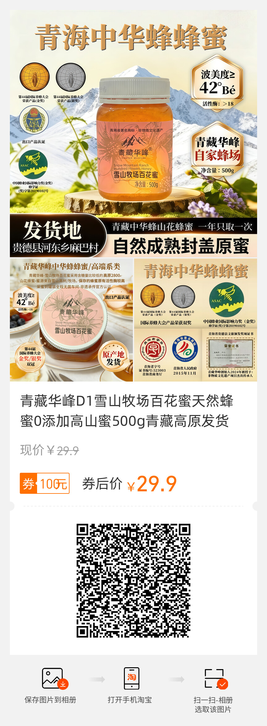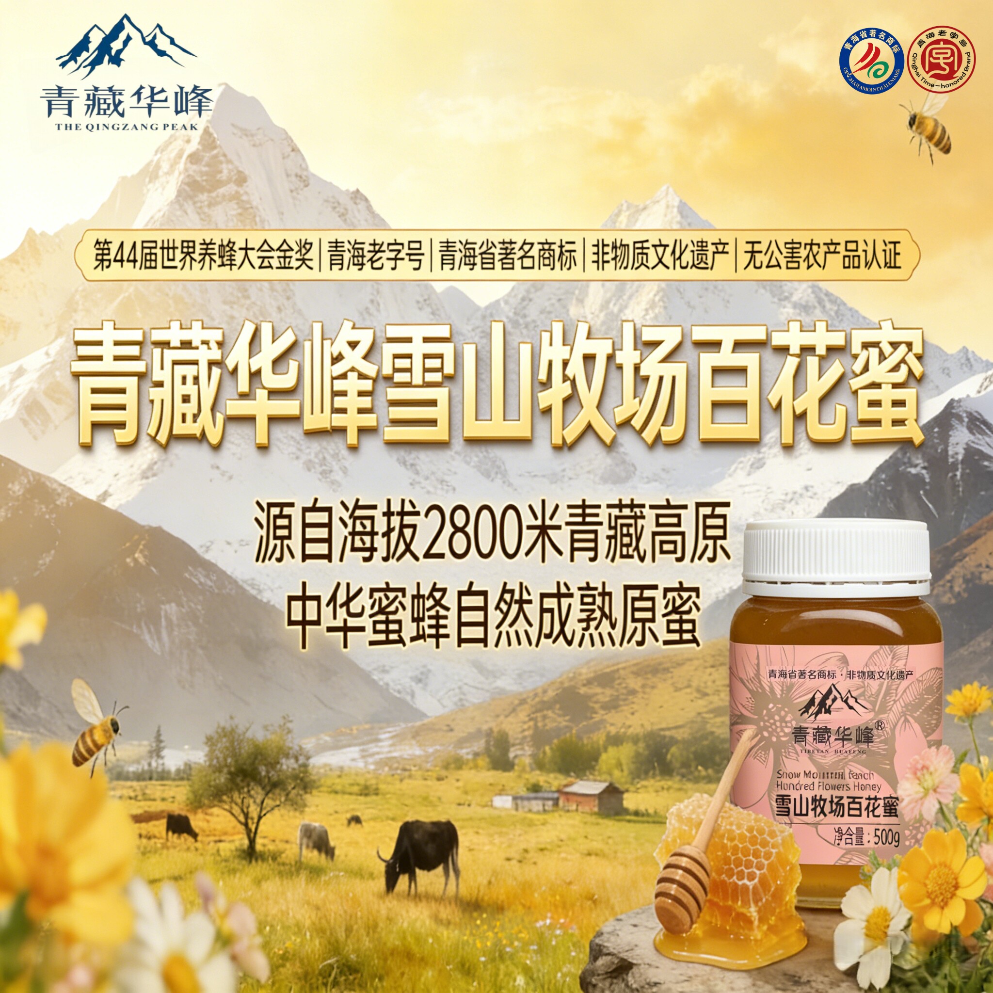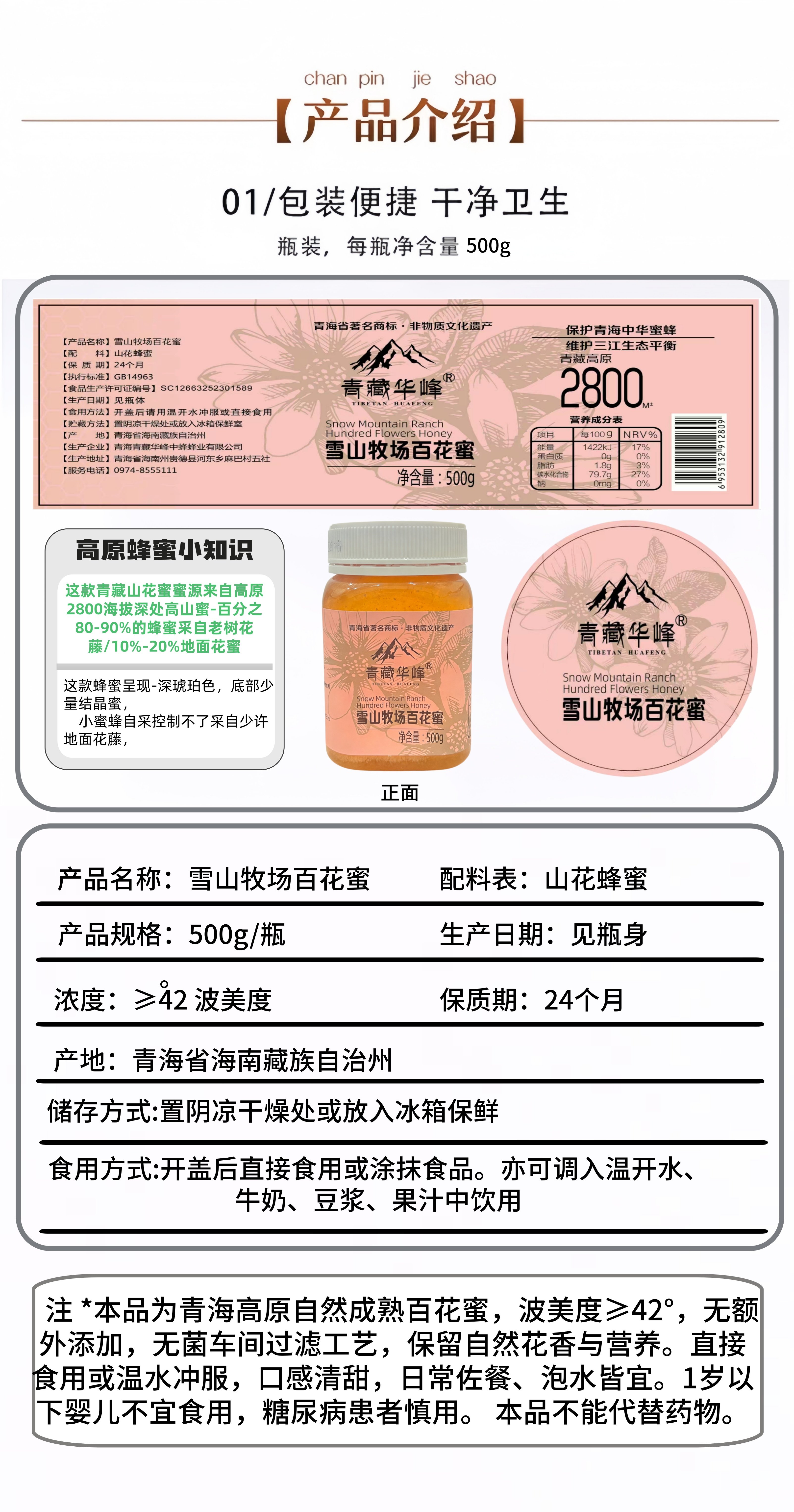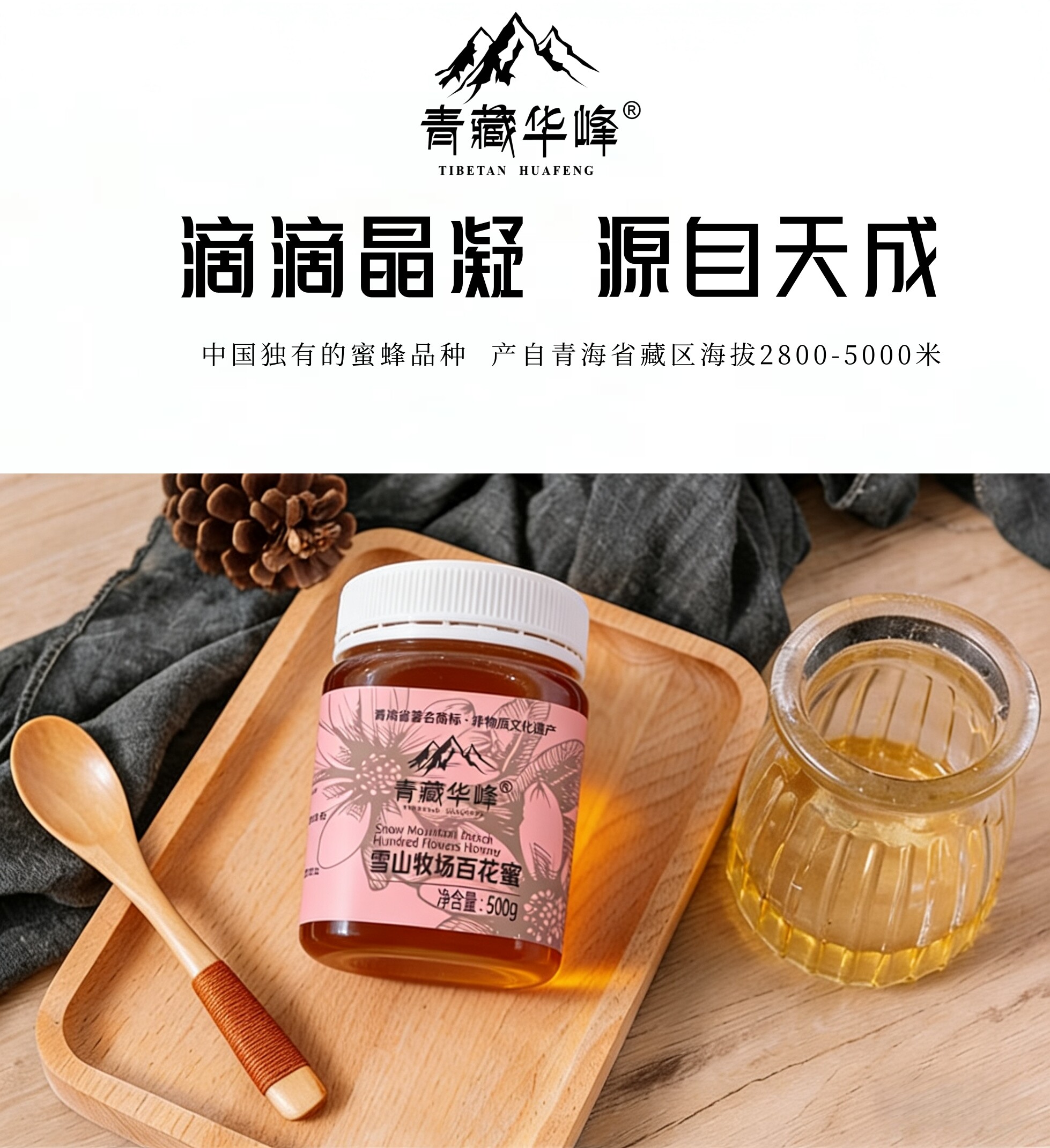 青藏华峰D1雪山牧场百花蜜天然蜂蜜0添加高山蜜500g青藏高原发货