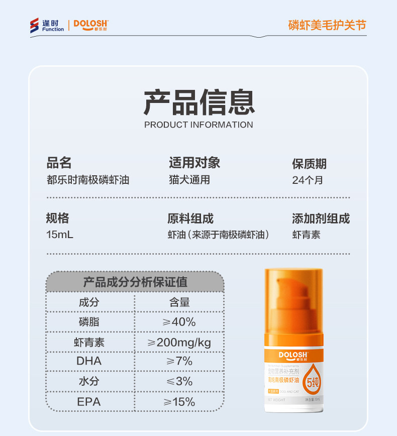 都乐时40%磷脂宠物磷虾油虾青素o-mega3犬猫通用美毛护肤少掉毛