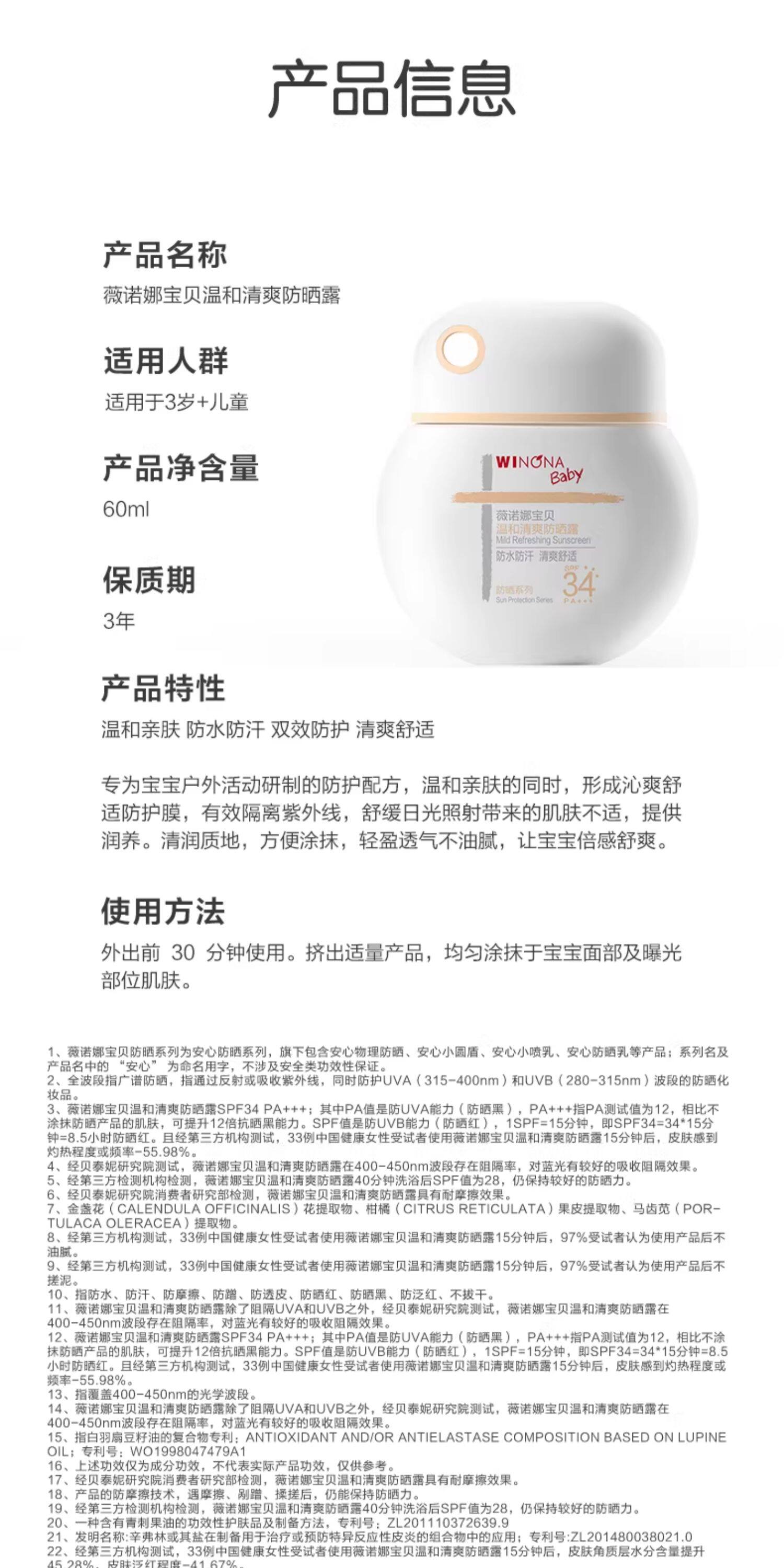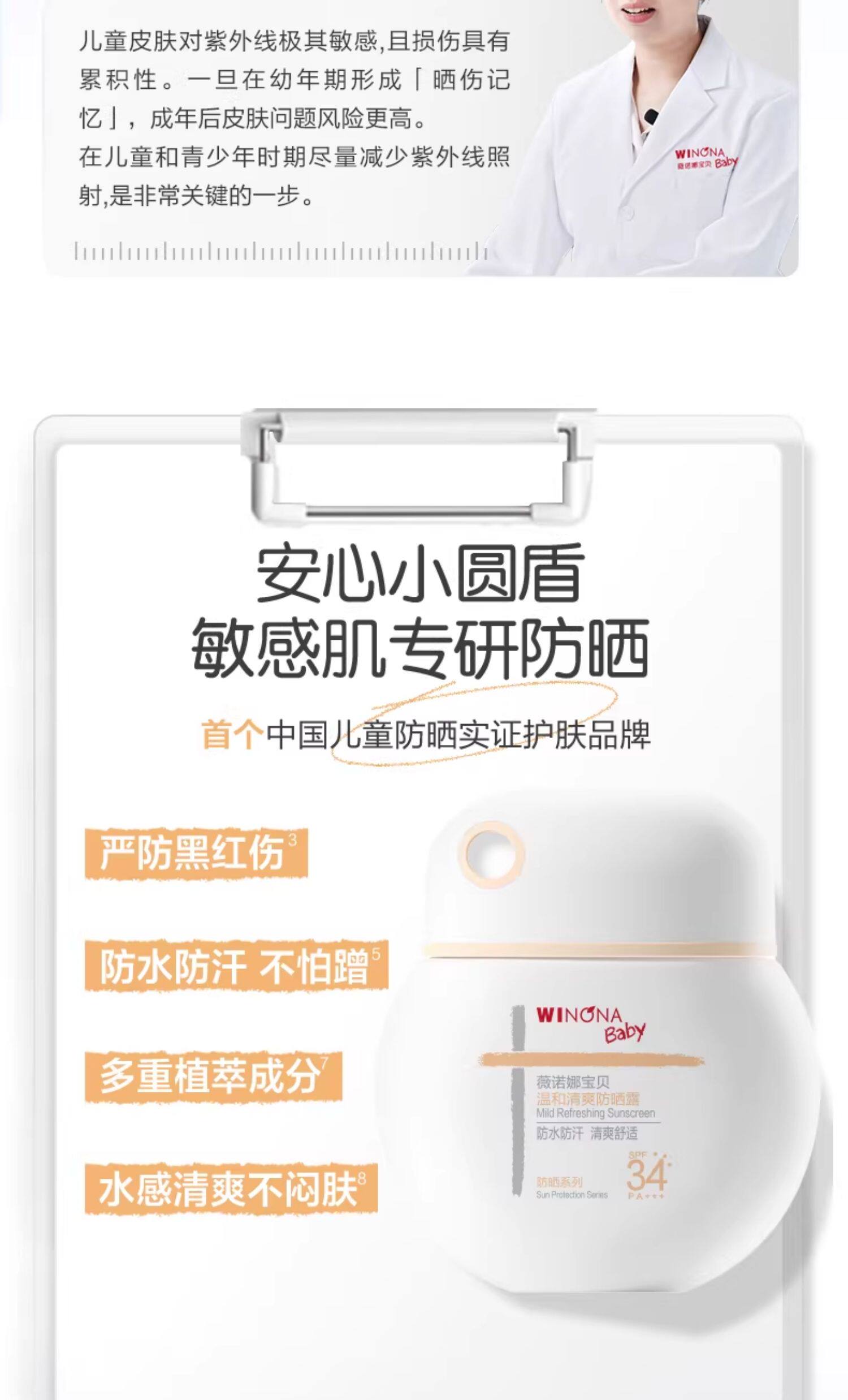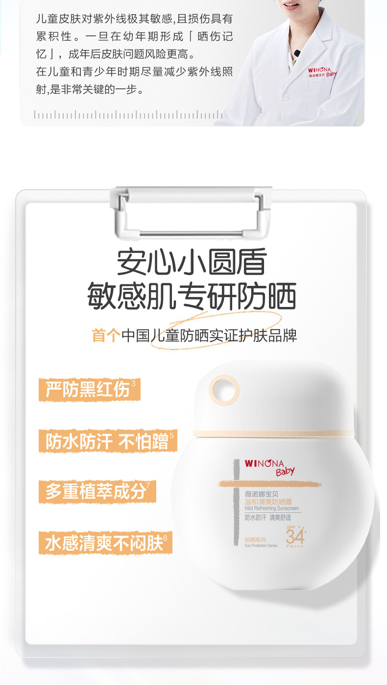 薇诺娜宝贝 儿童防晒霜 安心小圆盾 户外海边 宝宝专用 SPF34