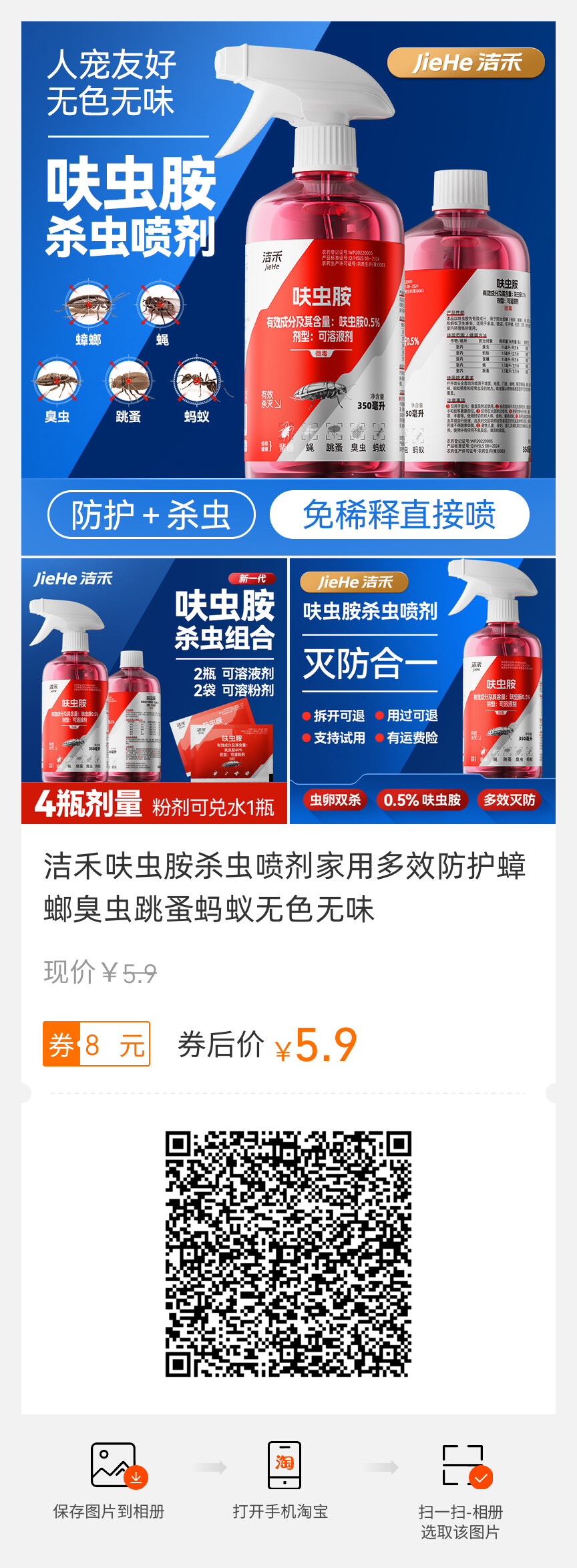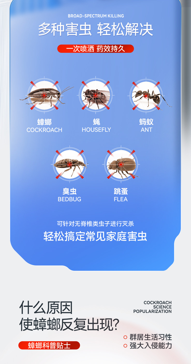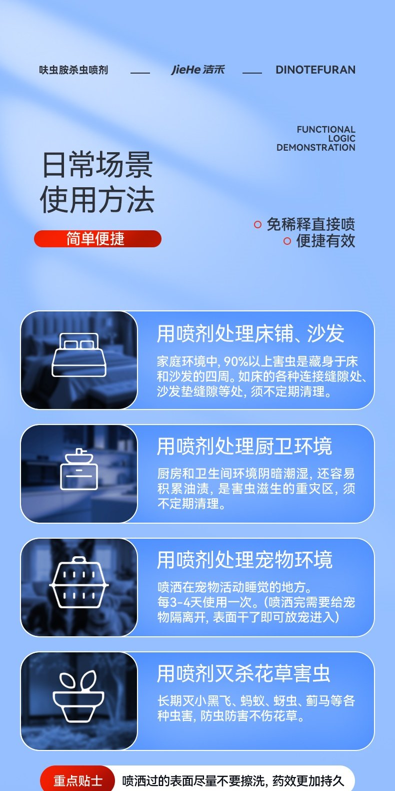 洁禾呋虫胺杀虫喷剂家用多效防护蟑螂臭虫跳蚤蚂蚁无色无味