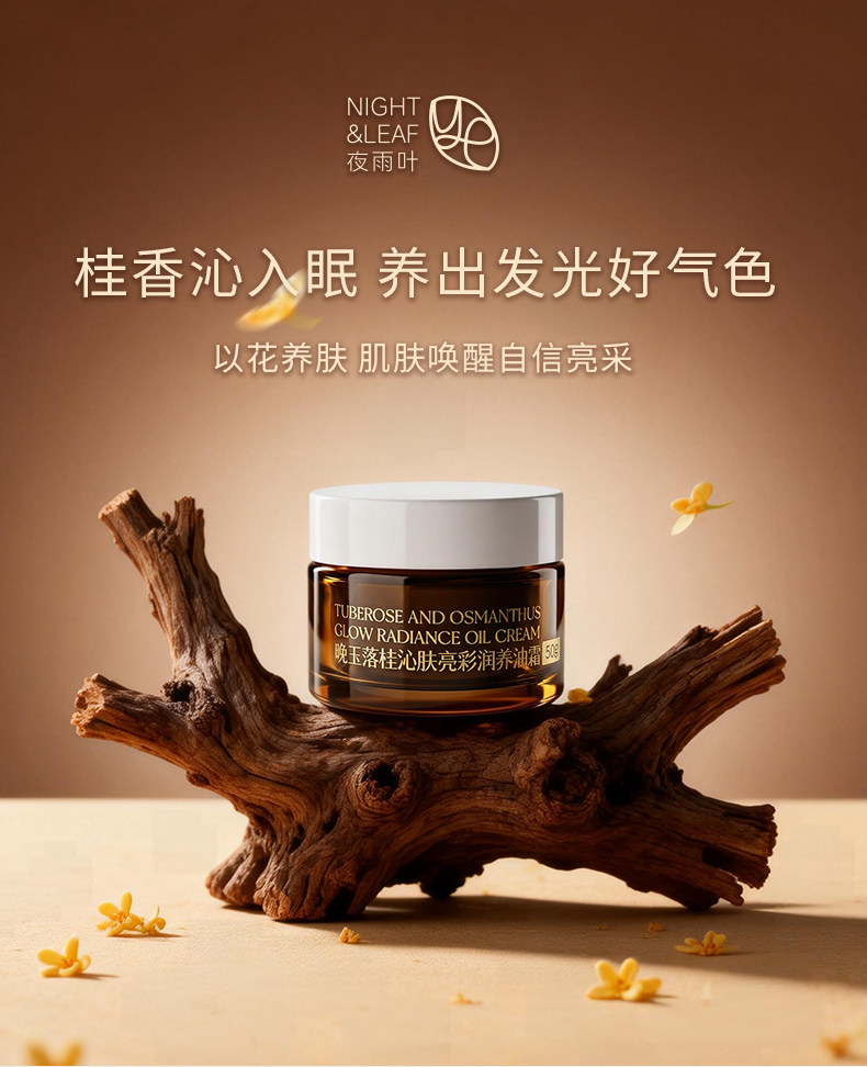 夜雨叶晚玉落桂亮彩油霜去黄提亮抗皱精油面霜隔离妆前乳旅行出差