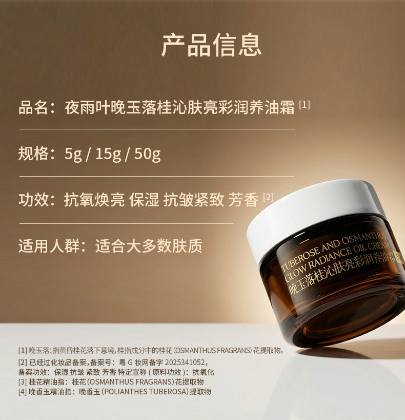 夜雨叶 晚玉落桂 亮彩油霜 去黄提亮 抗皱精油 妆前乳