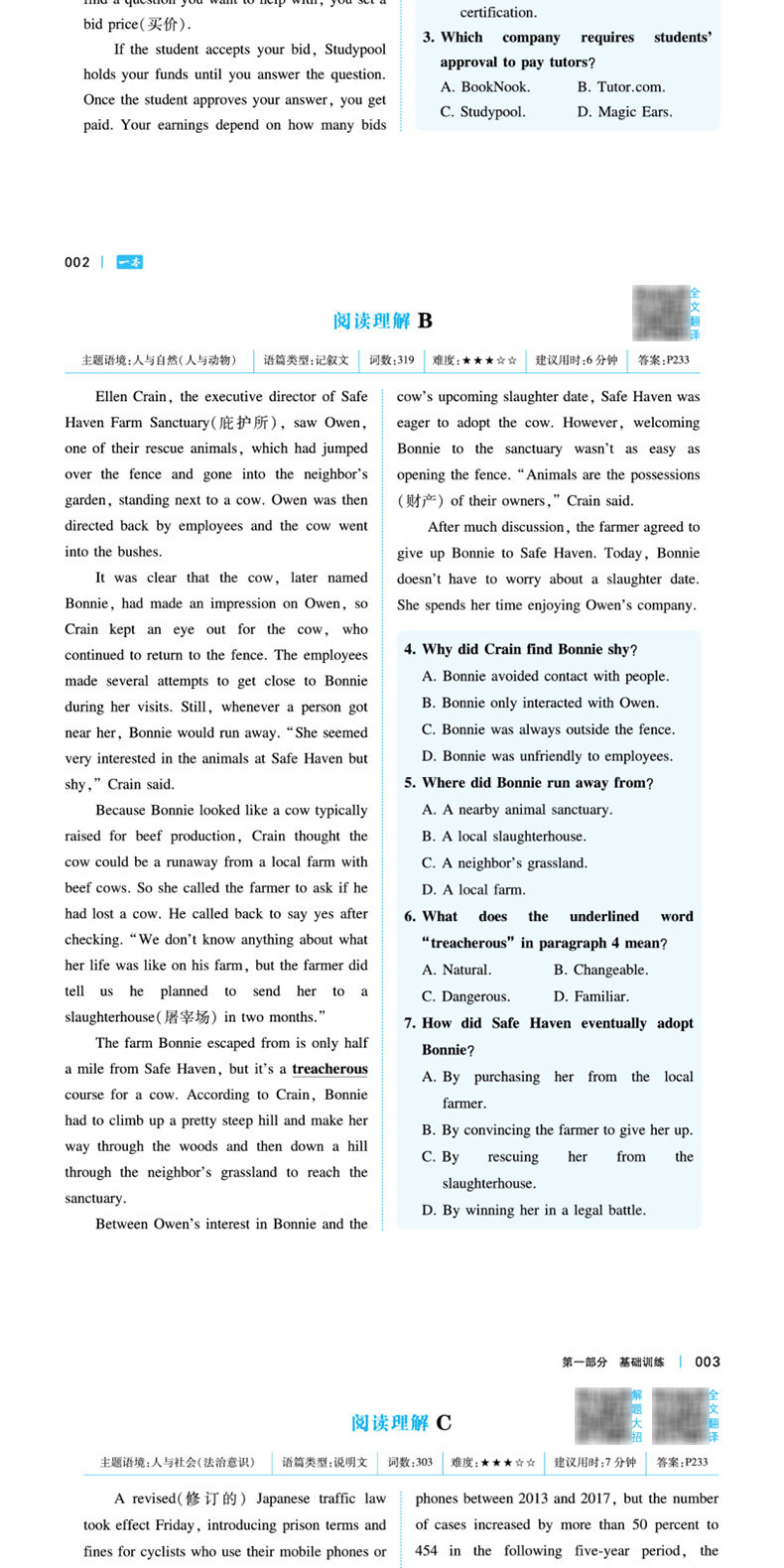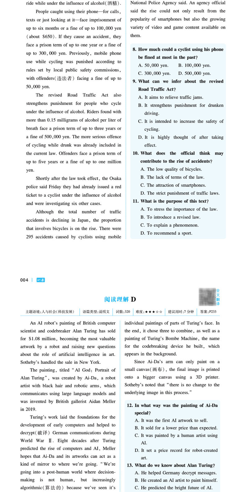 高中英语 阅读五合一 完形填空 阅读理解 高考英语 专项训练
