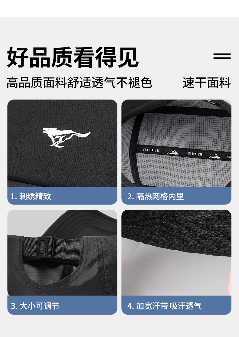 七匹狼、户外防晒、遮阳帽、鸭舌帽、男款、防水速干