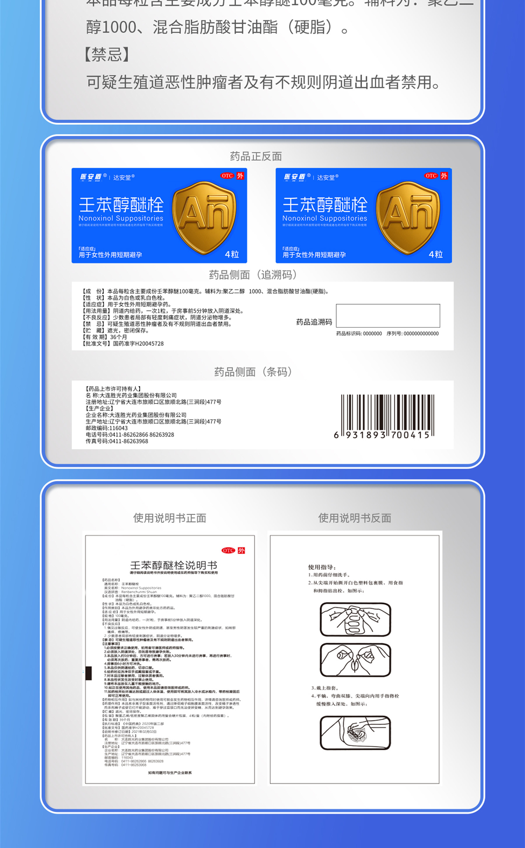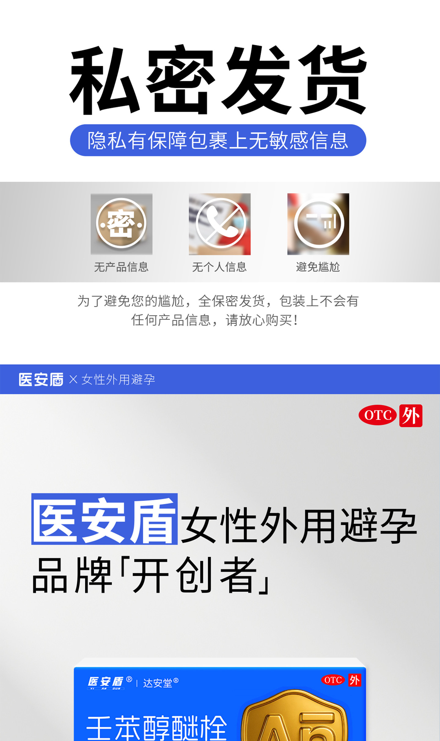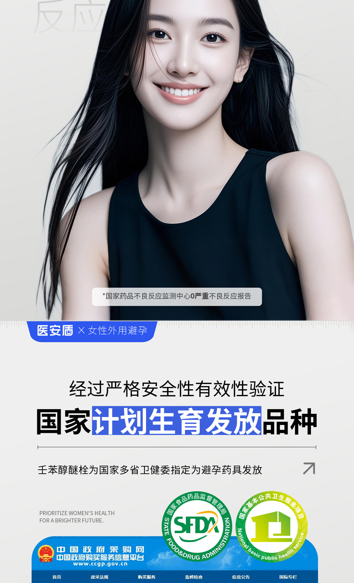医安盾、壬苯醇醚栓、100mg*4粒、外用避孕药、无套零距离、液体避孕套
