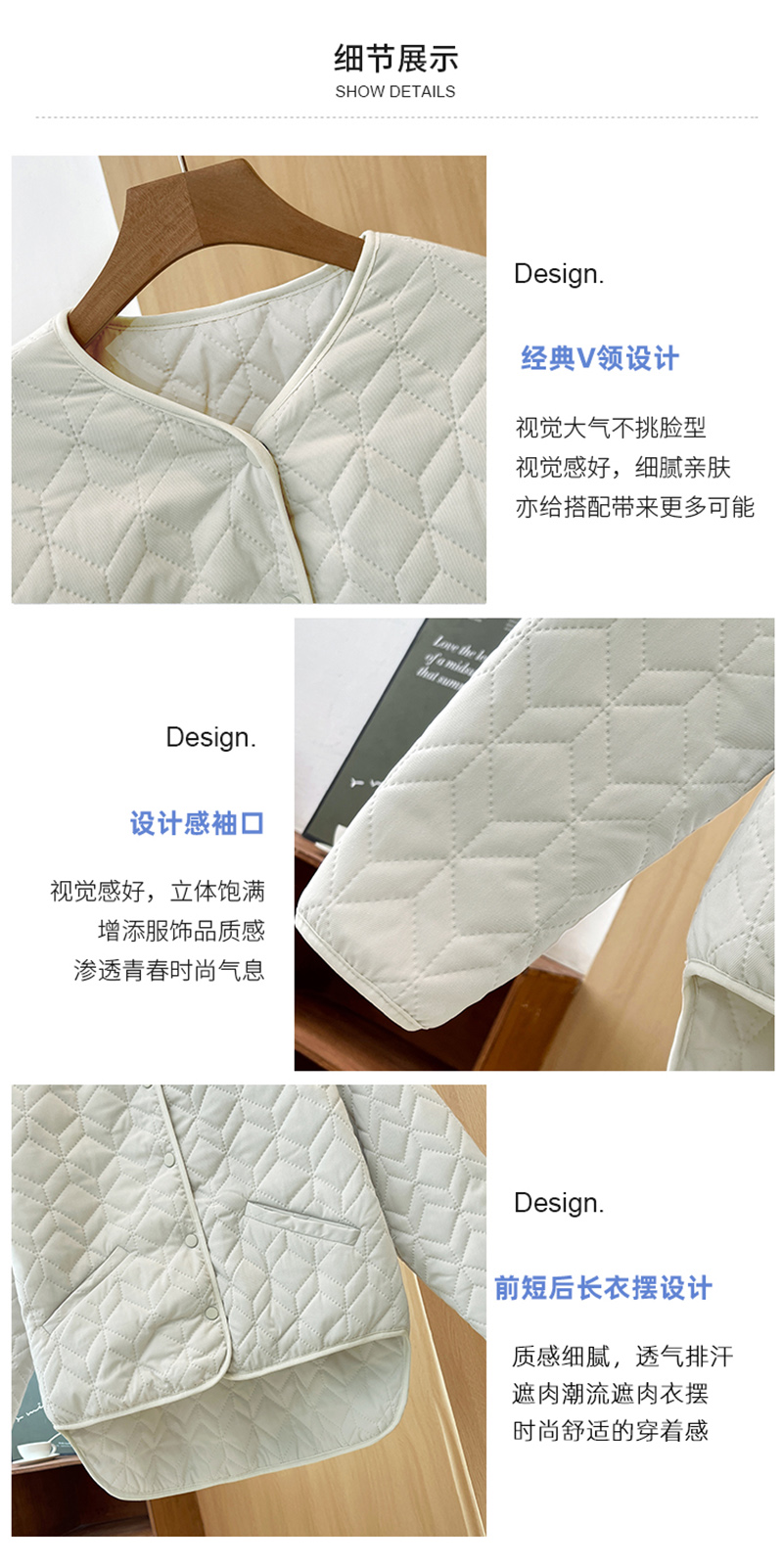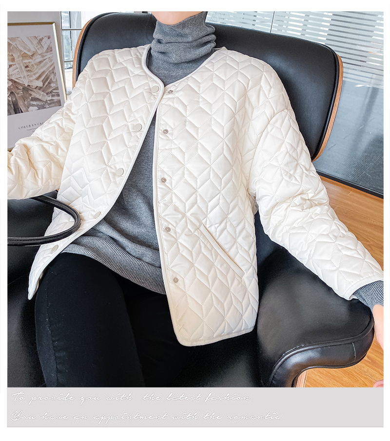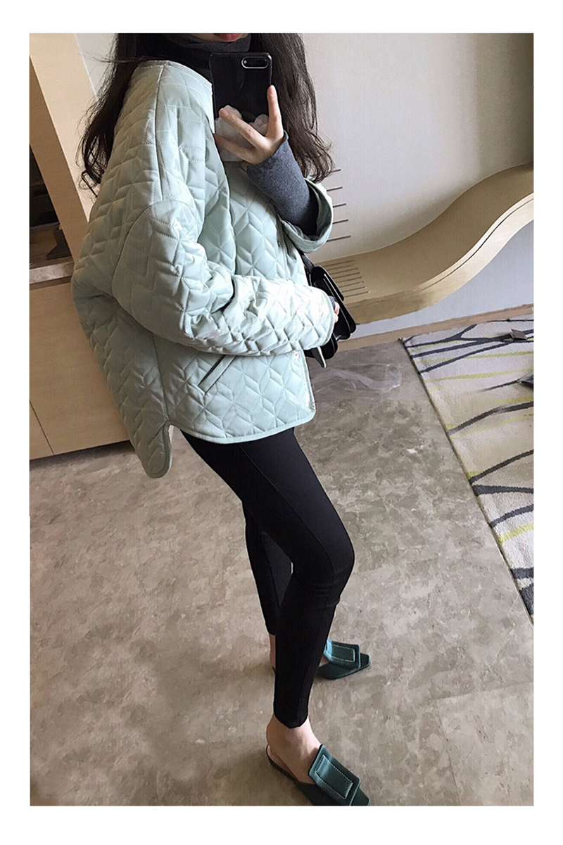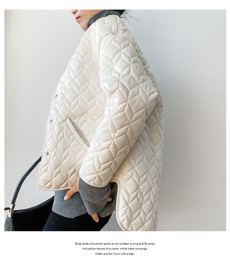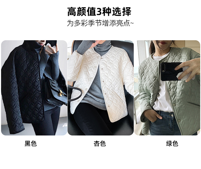 2023 冬季 新款 加绒 棉袄 蓝色 菱格纹 棉服 夹克 加厚 宽松 新款 外套 上衣