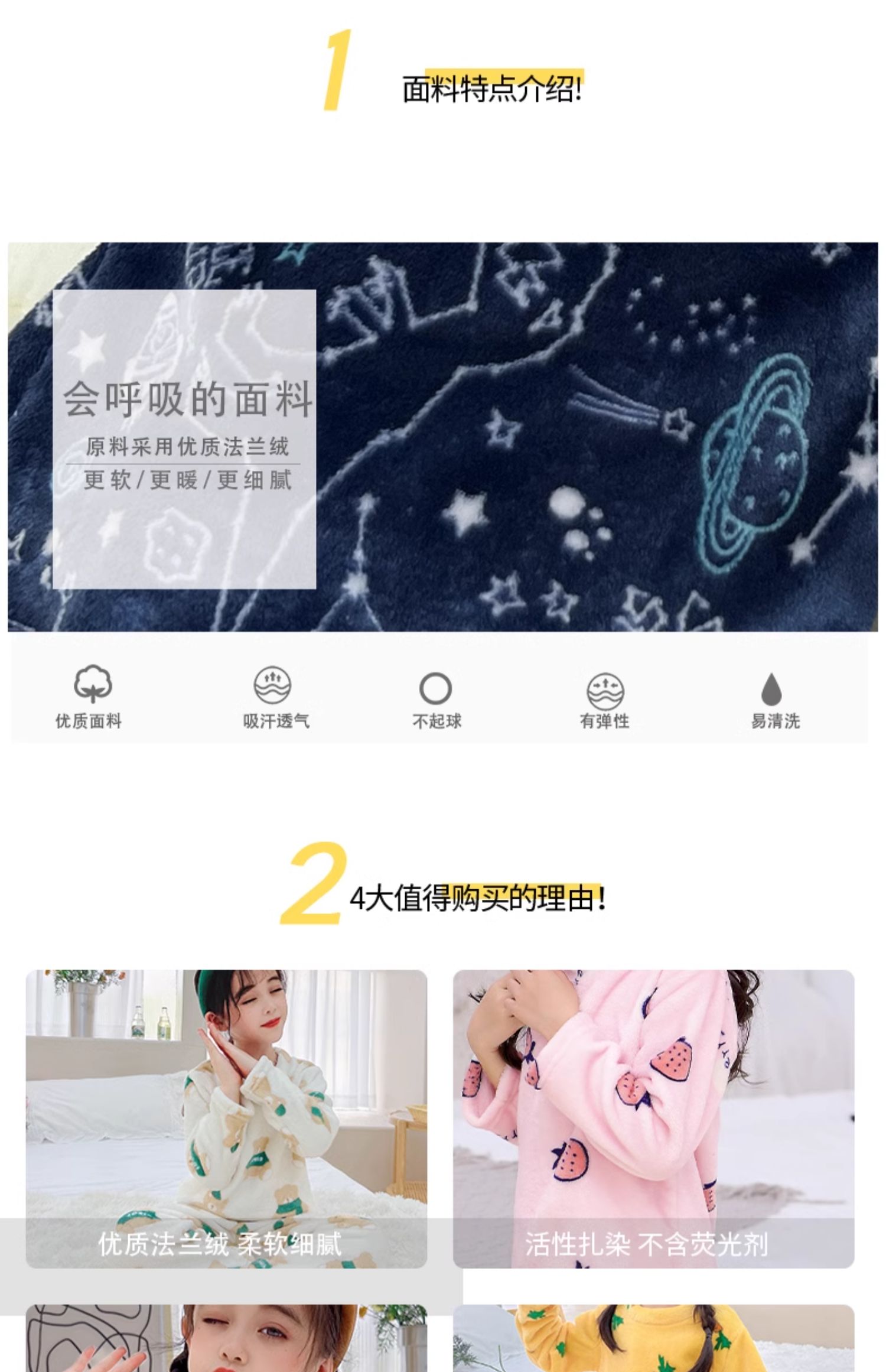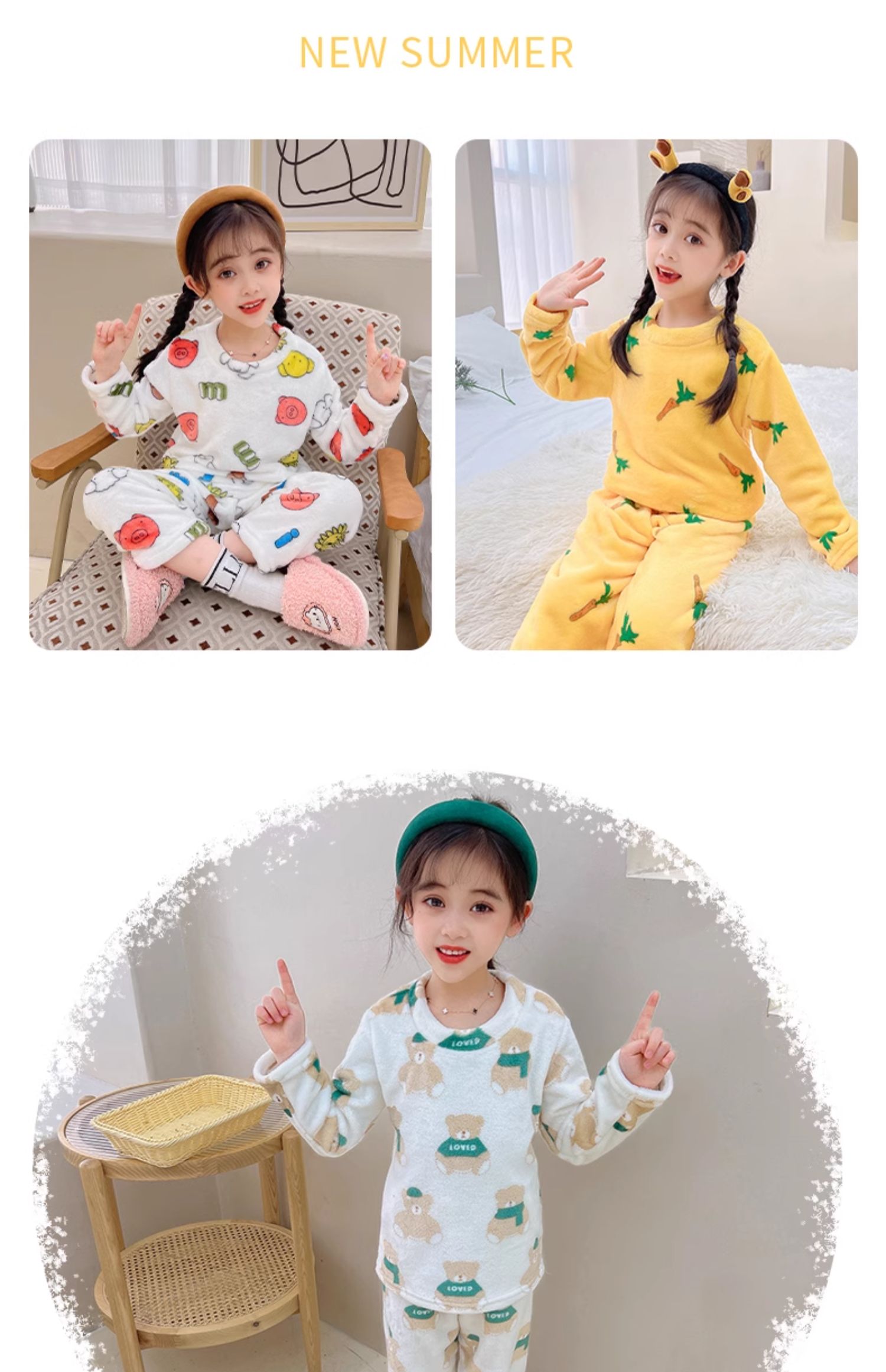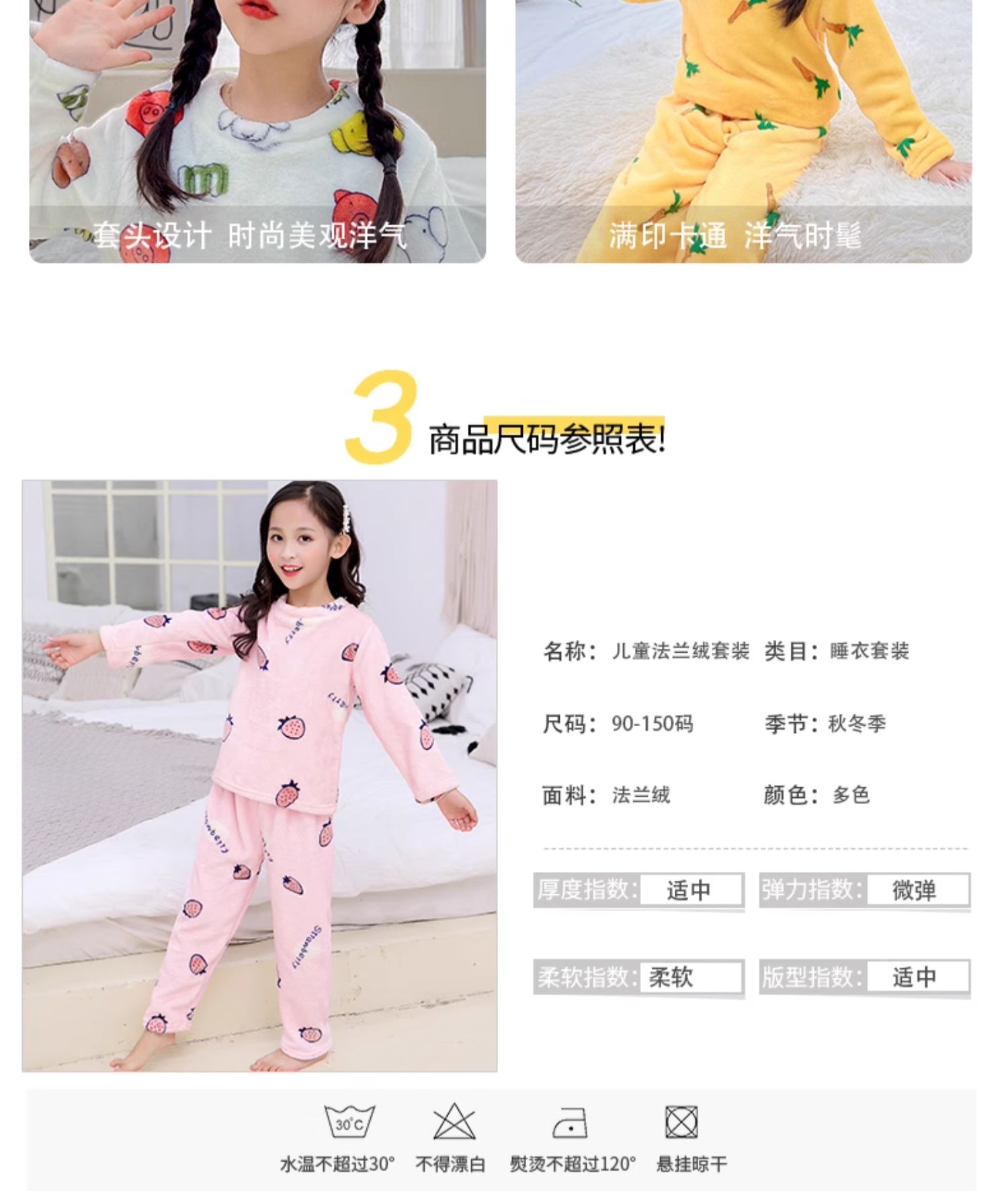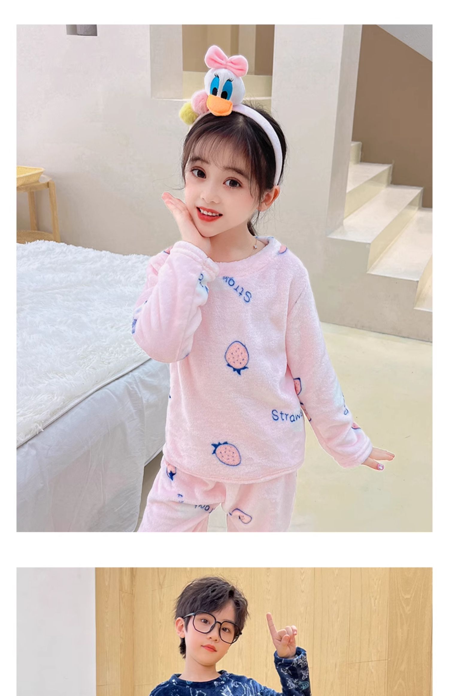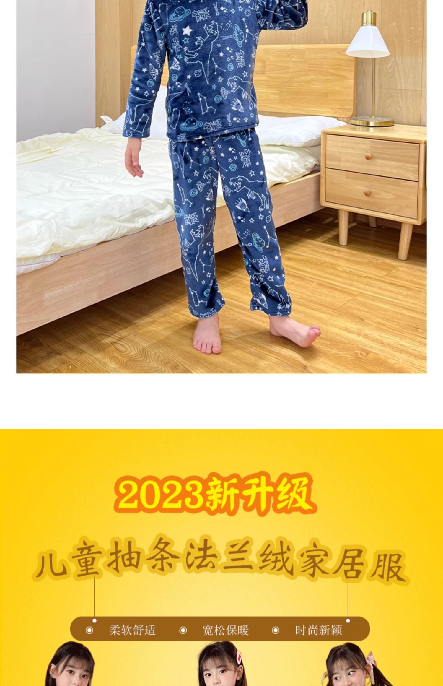 儿童 家居服 套装 法兰绒 睡衣 卡通 双面绒 保暖睡衣 居家服