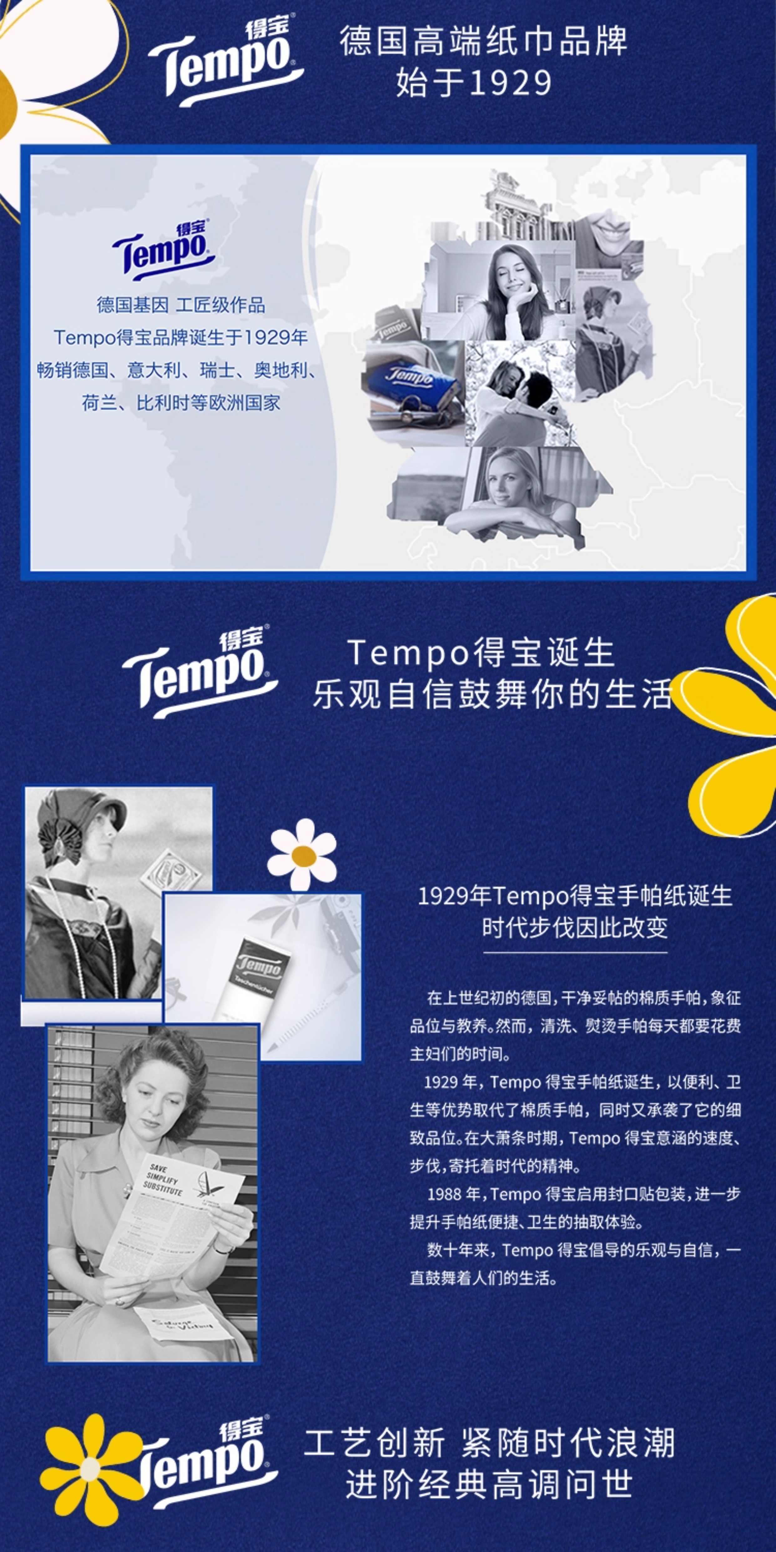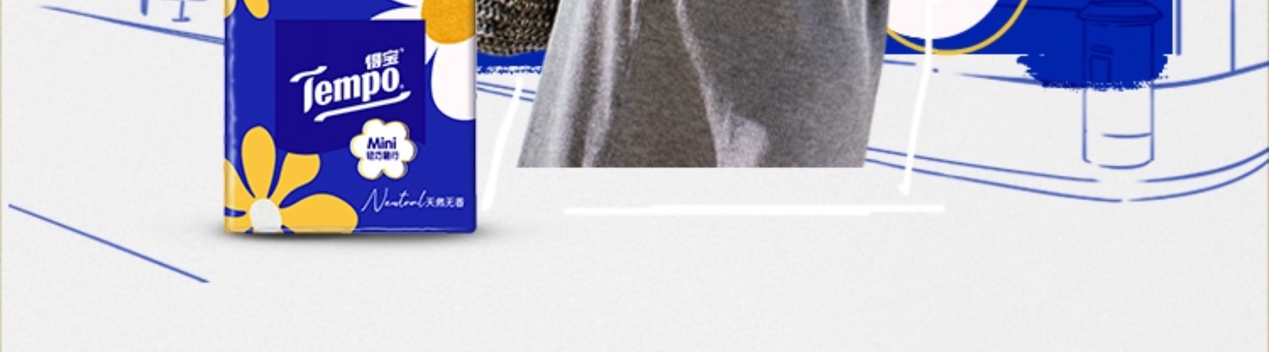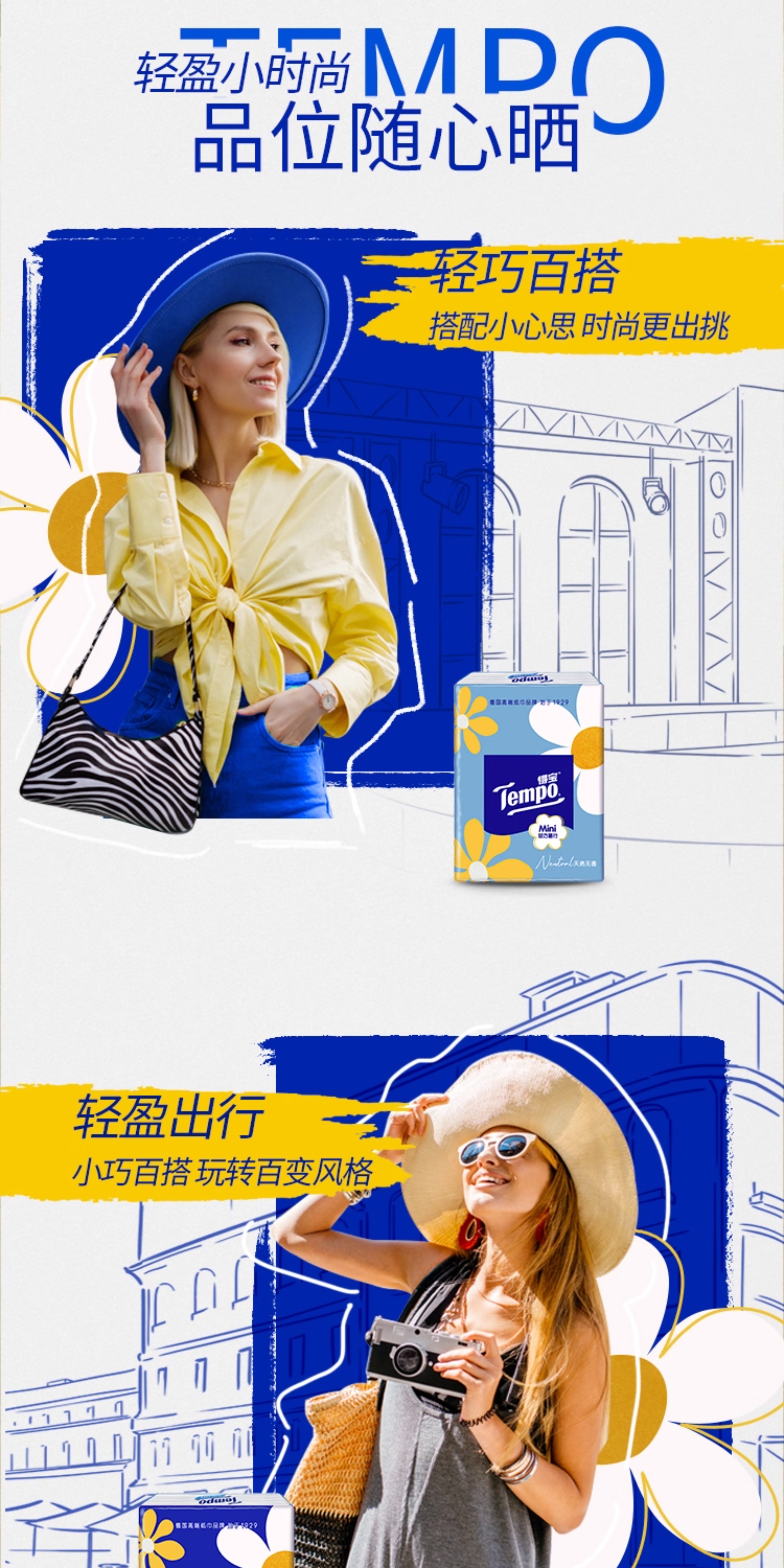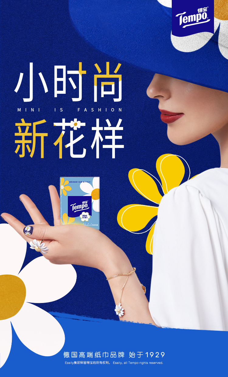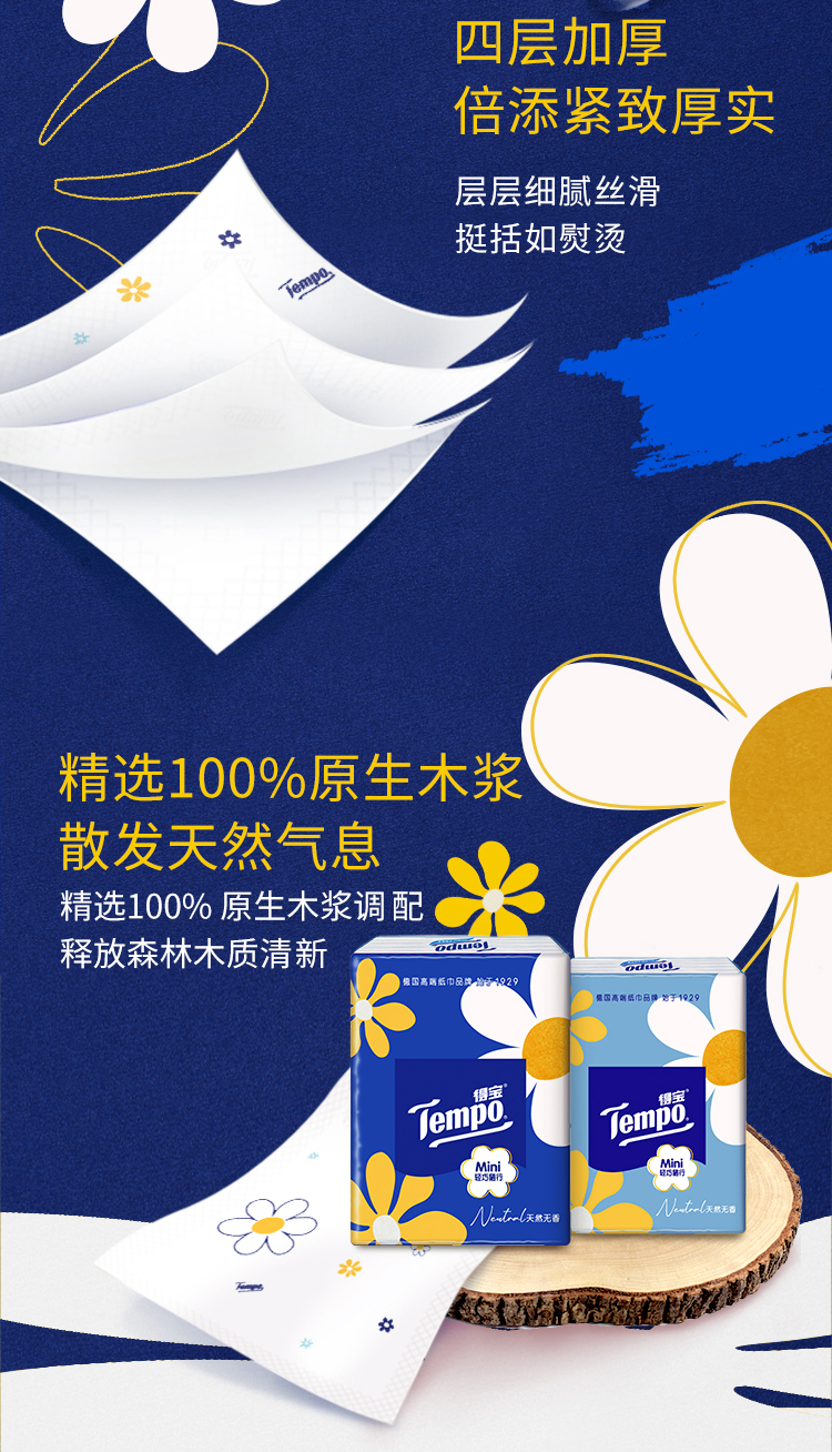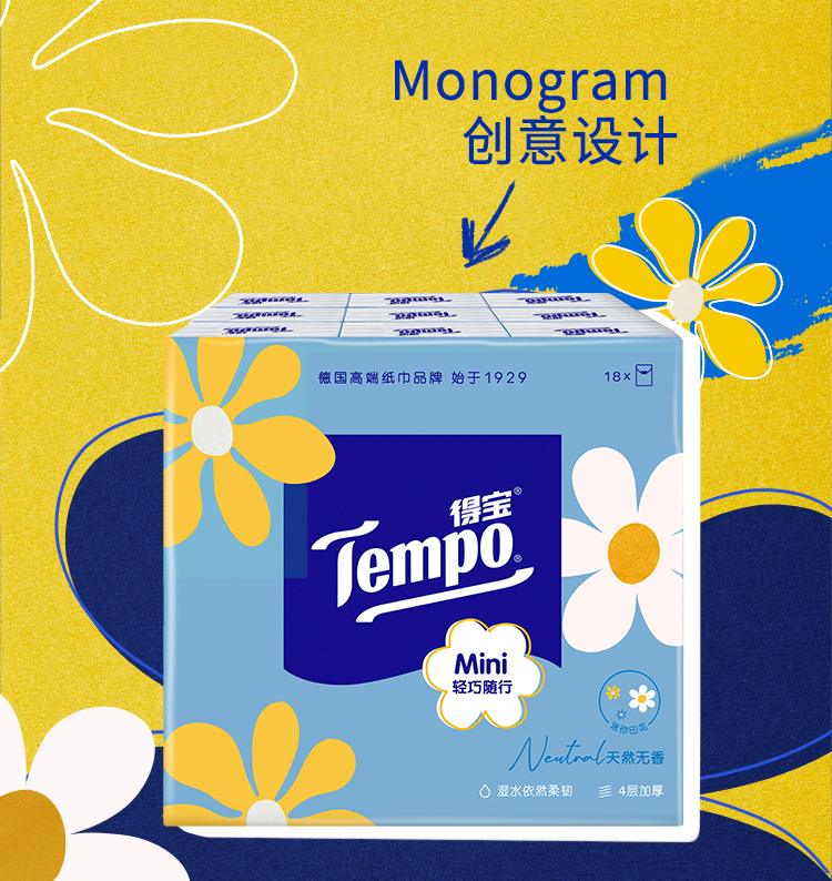 Tempo得宝、太阳花Mini、迷你手帕纸、四层加厚、54小包、印花设计