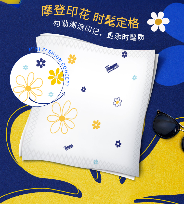 Tempo得宝太阳花Mini迷你印花手帕纸四层加厚5张54小包t1