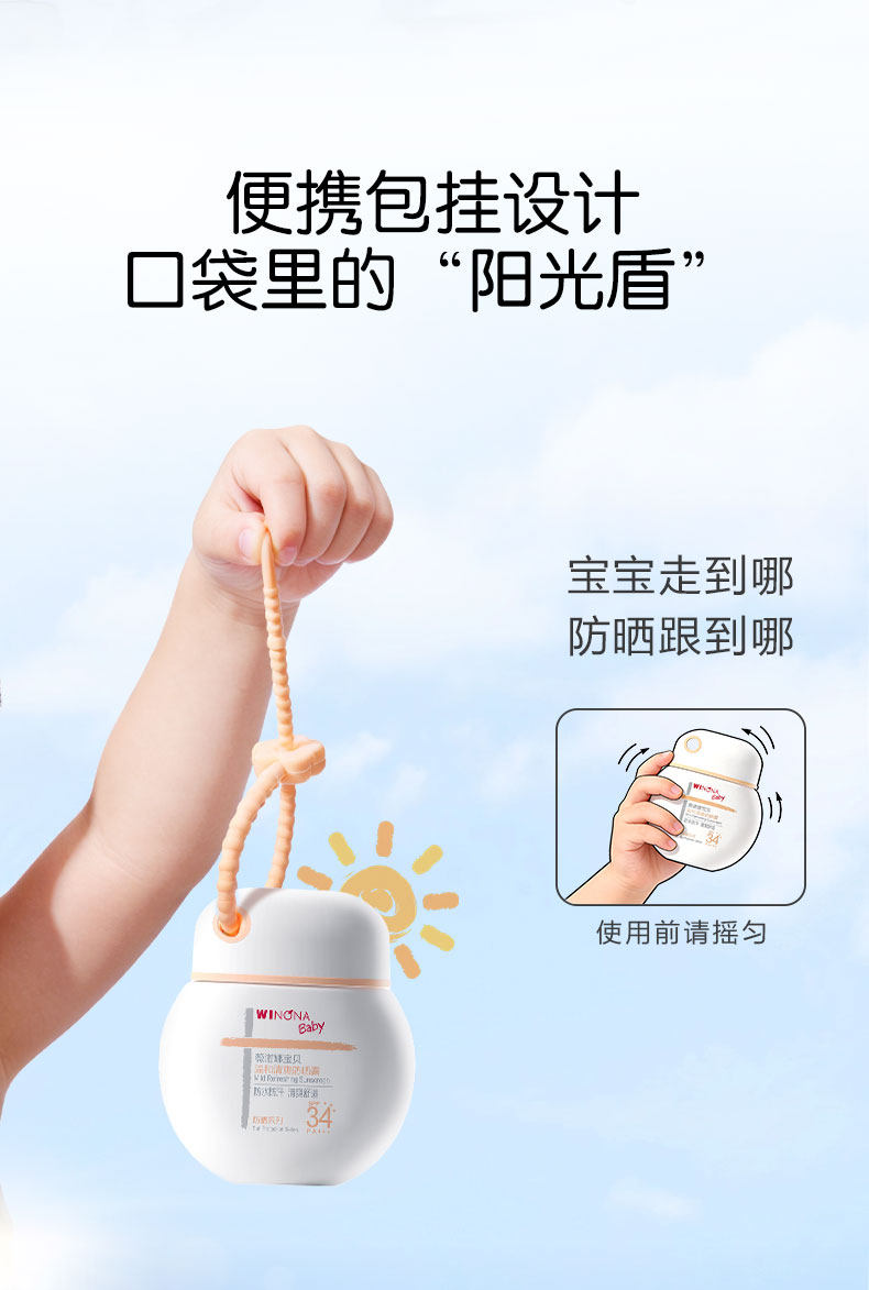 薇诺娜宝贝、儿童防晒霜、安心小圆盾、户外海边、宝宝专用、SPF34