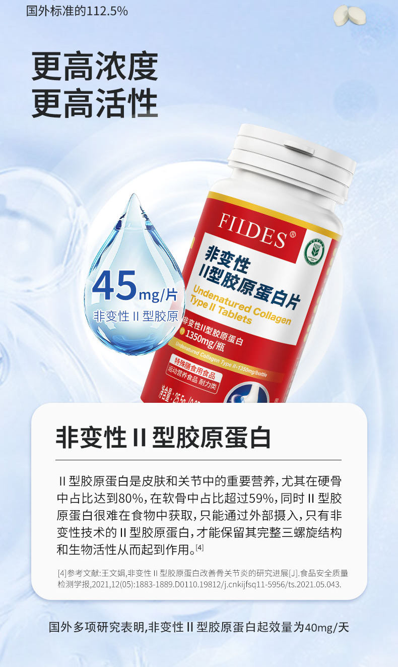 关节不适就用它FIIDES非变性II型胶原蛋白片高浓度30片成人中老年
