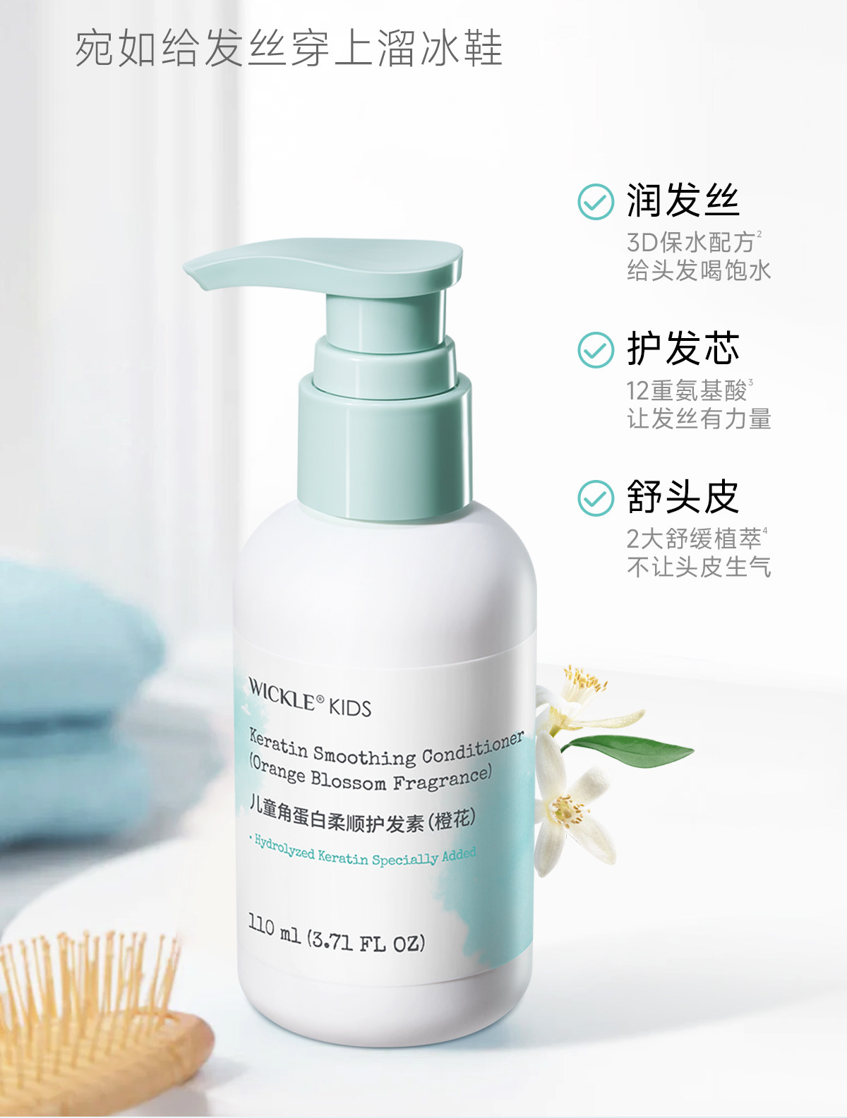 wickle、儿童护发素、女童专用、长发、柔顺、头发梳理