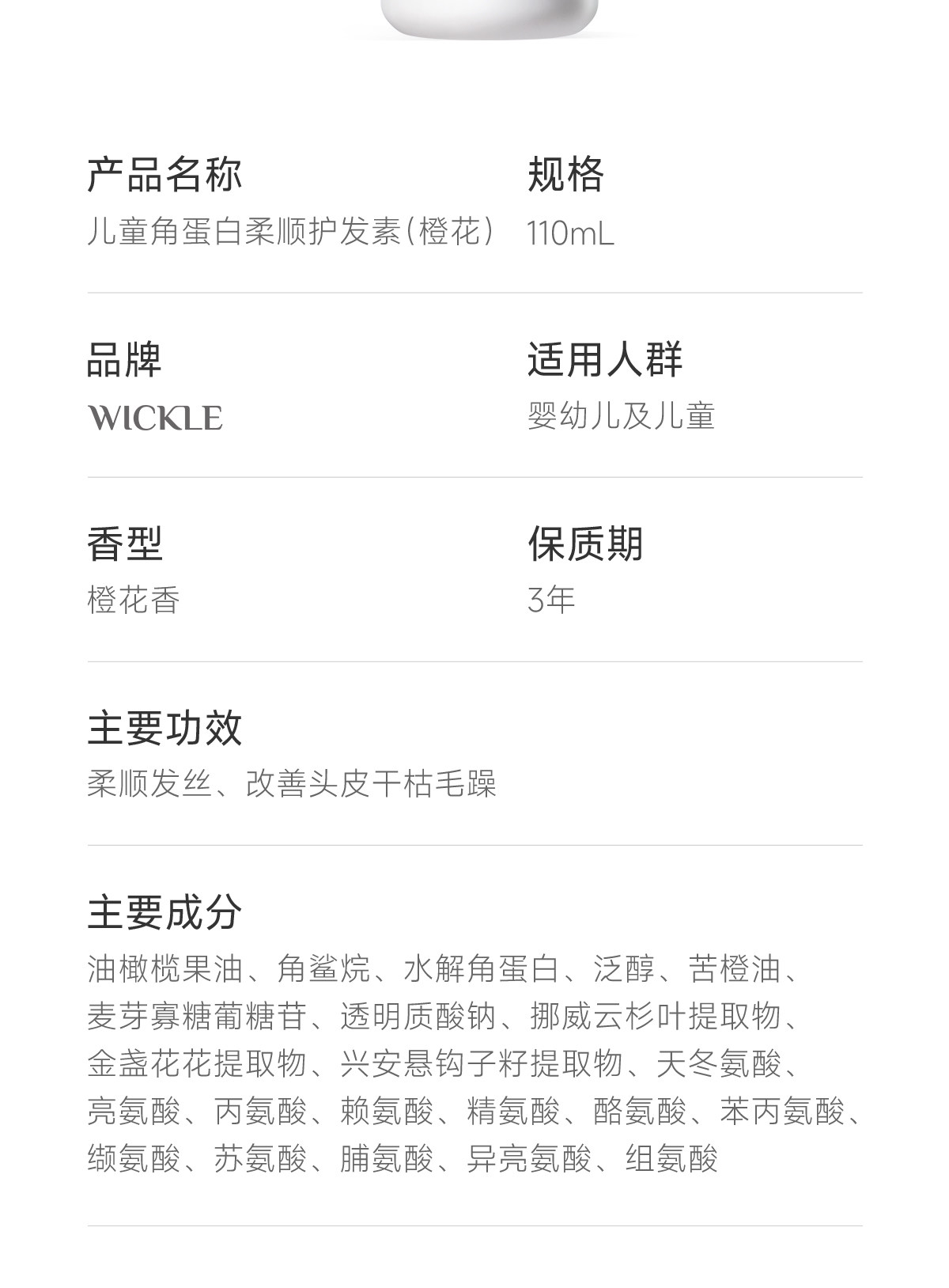 wickle儿童护发素女童小女孩专用长发头发梳理柔顺儿童护发