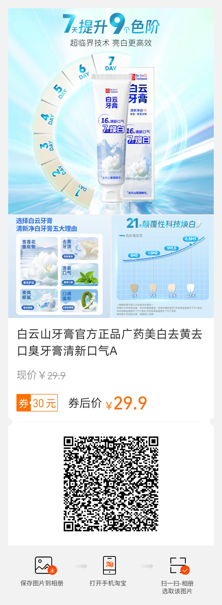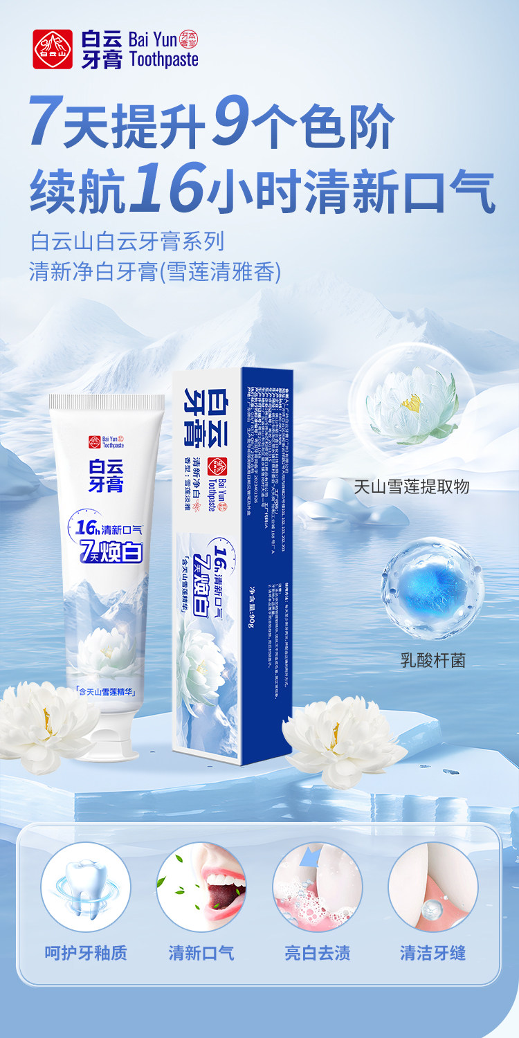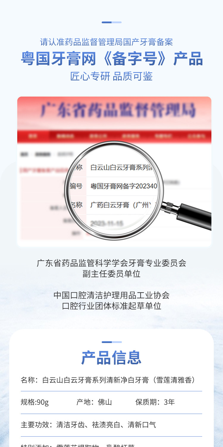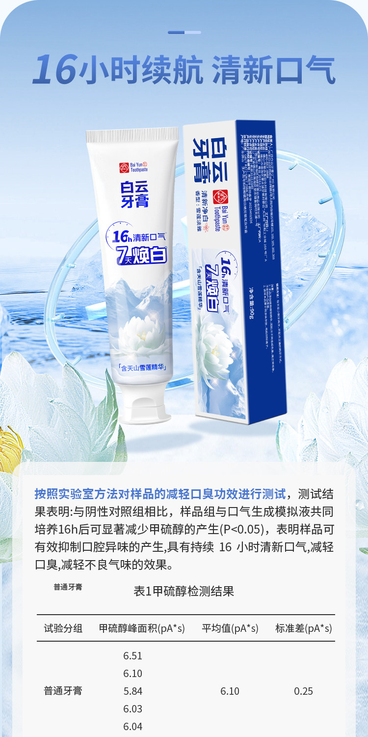 白云山牙膏、官方正品、广药、美白去黄、去口臭、清新口气