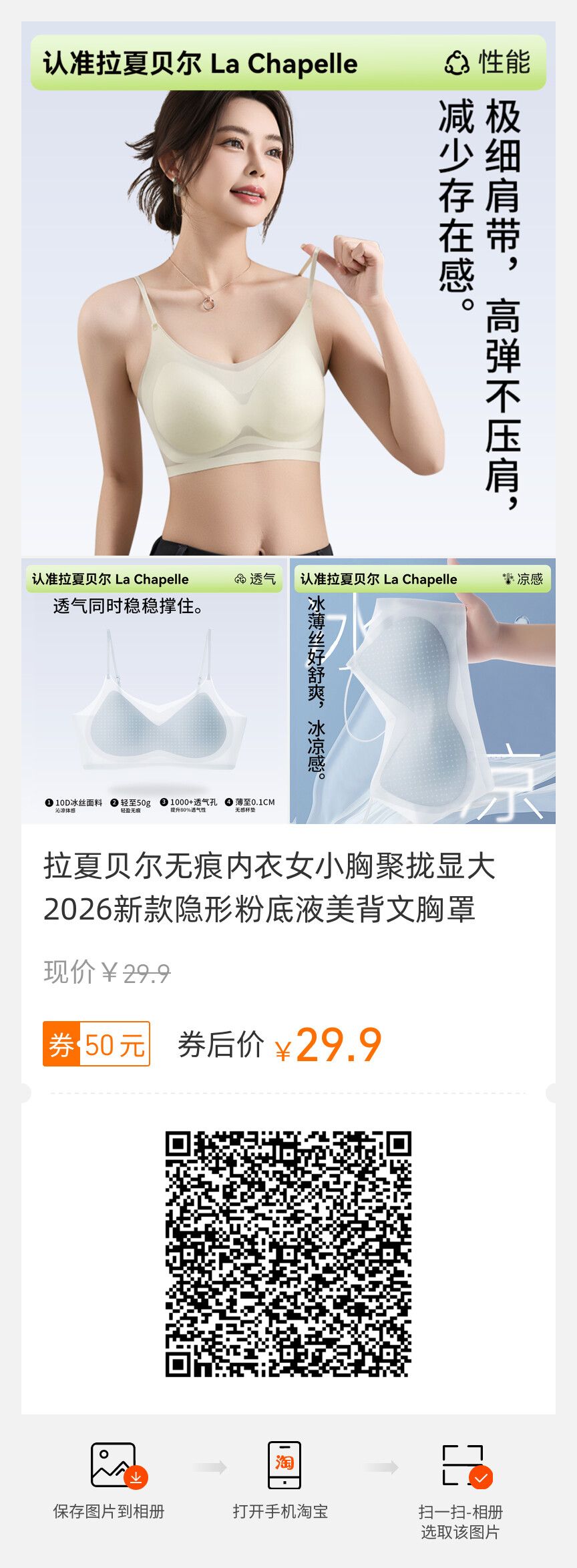 拉夏贝尔、无痕内衣、小胸聚拢、2026新款、隐形粉底液美背、文胸罩