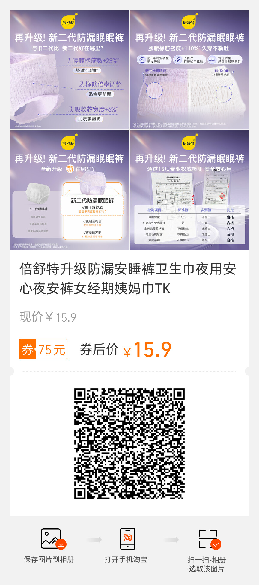 倍舒特、升级防漏、安睡裤、卫生巾、夜用、经期姨妈巾