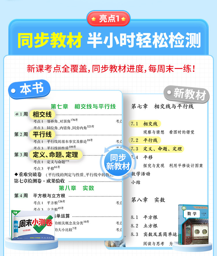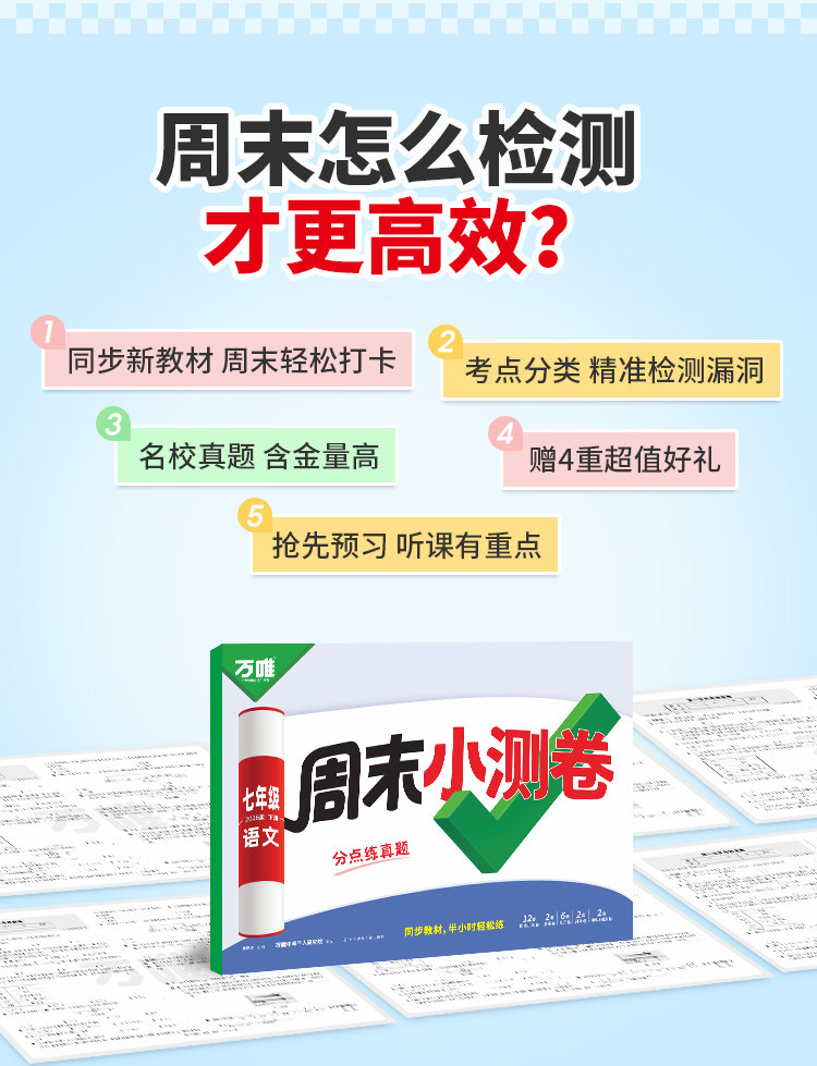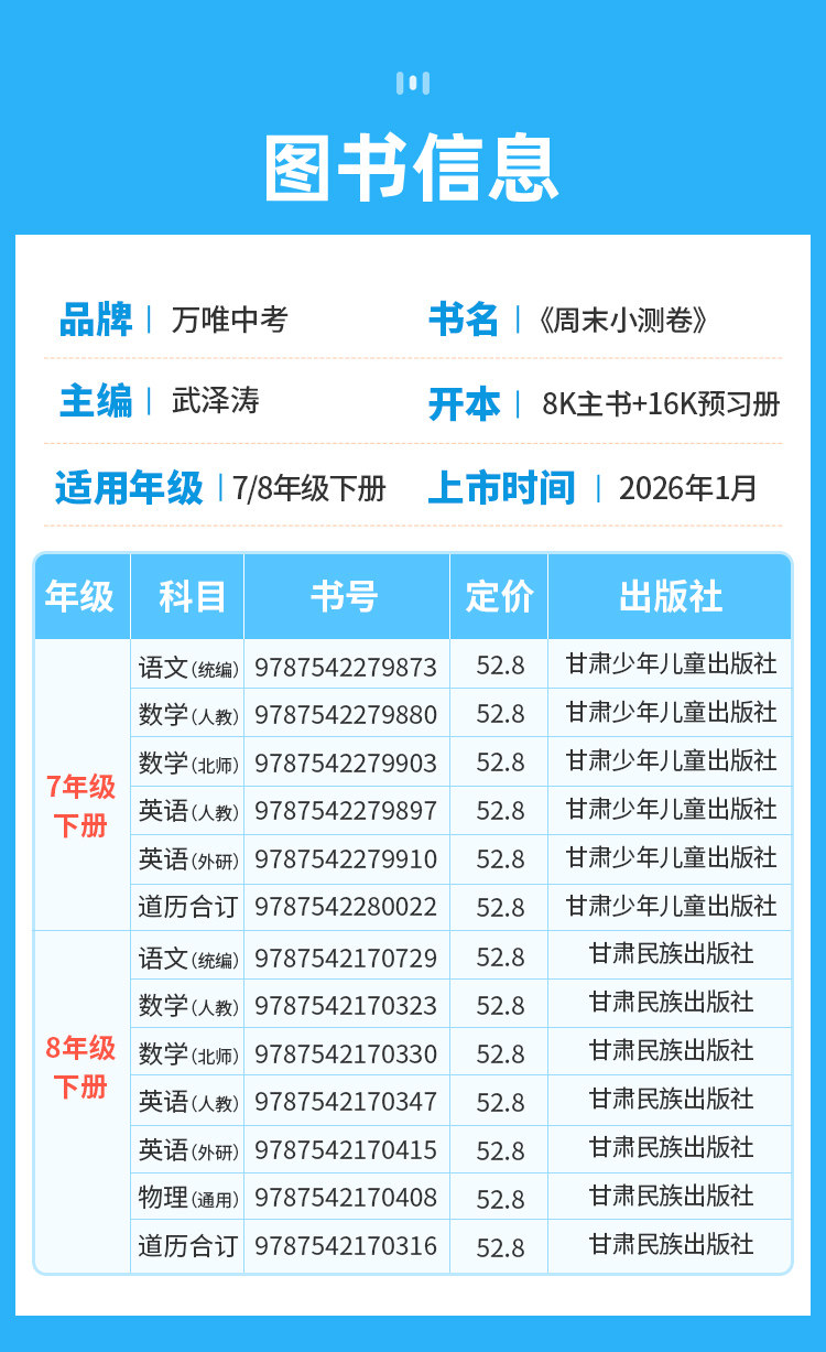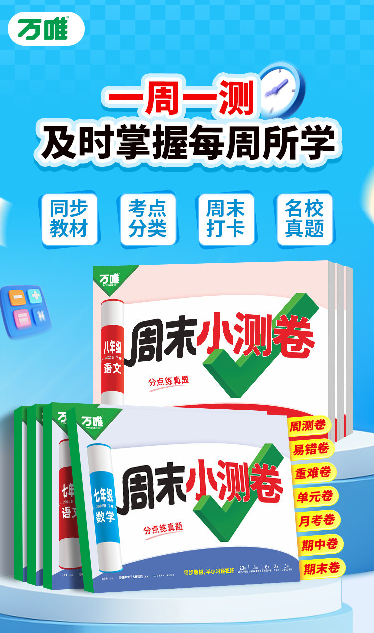 2026新版、万唯周末半小时小测卷、初中七八年级、同步教材、周测单元测