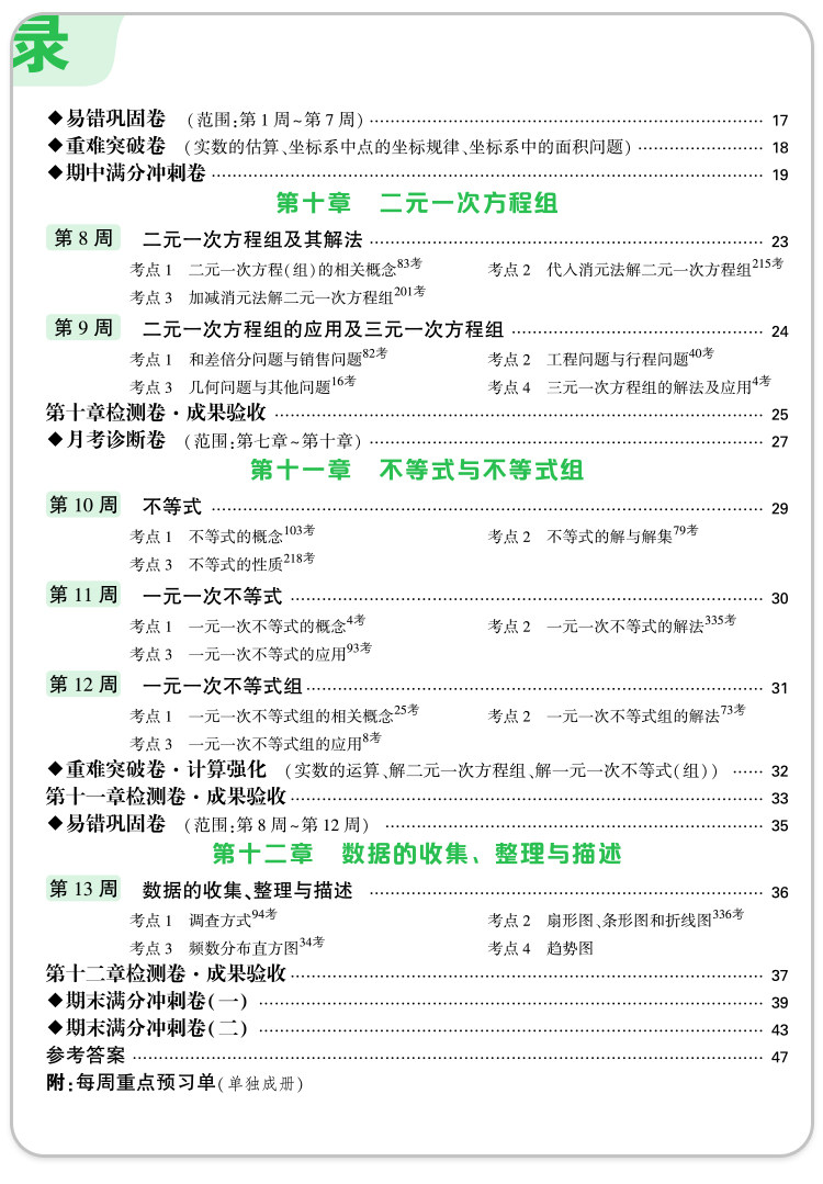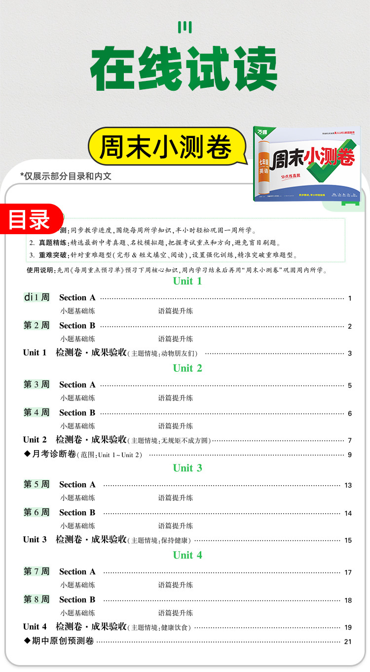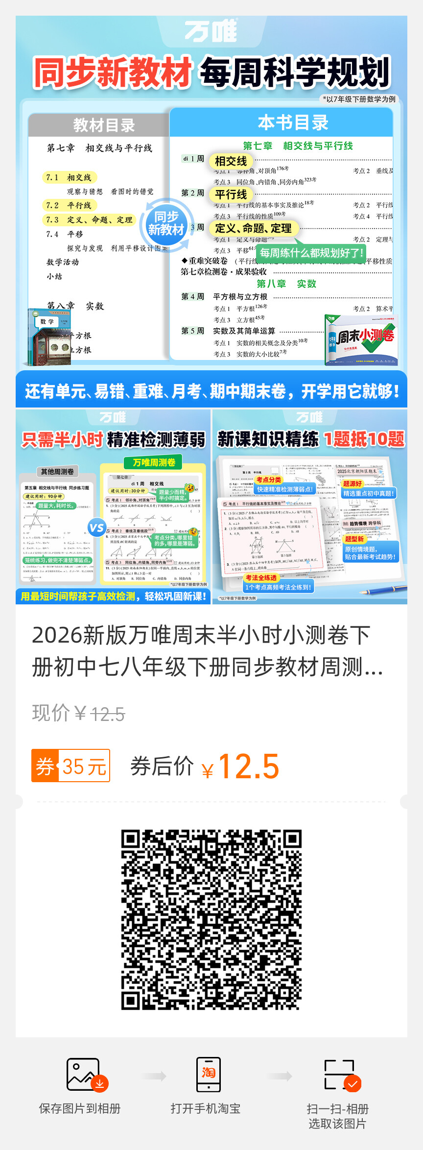 2026新版、万唯周末半小时小测卷、初中七八年级、同步教材、周测单元测