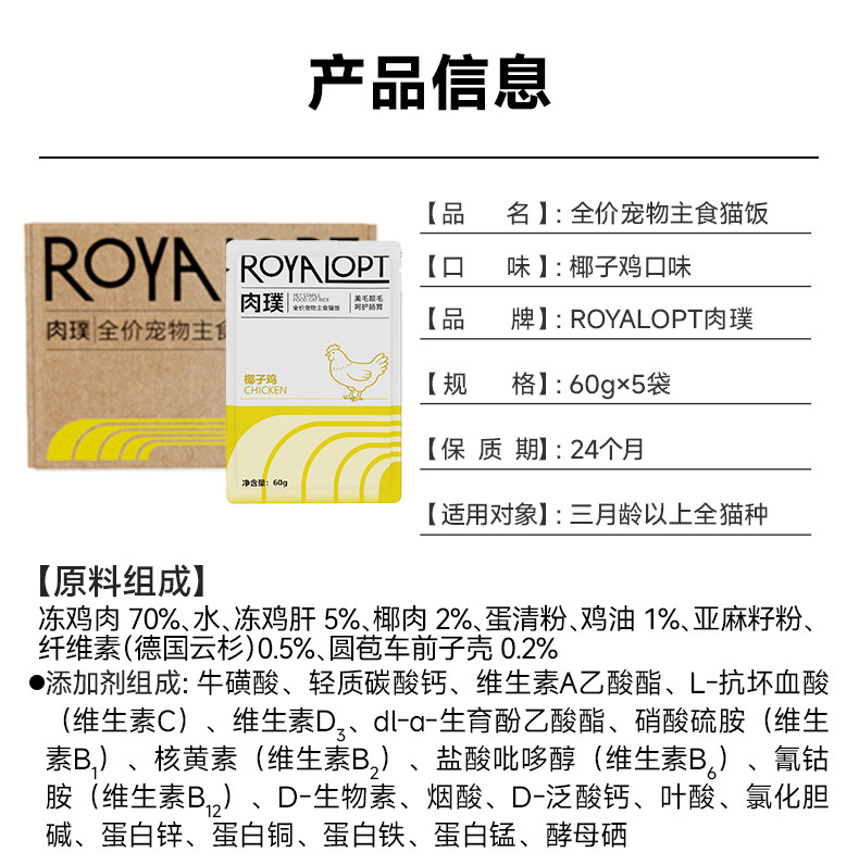 肉璞主食猫饭湿粮猫咪全价主食餐包罐头椰子鸡猫条零食ROYALOPT