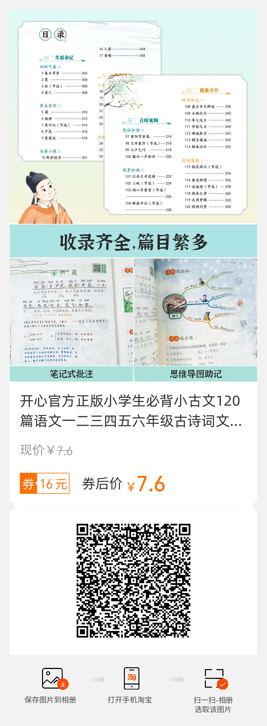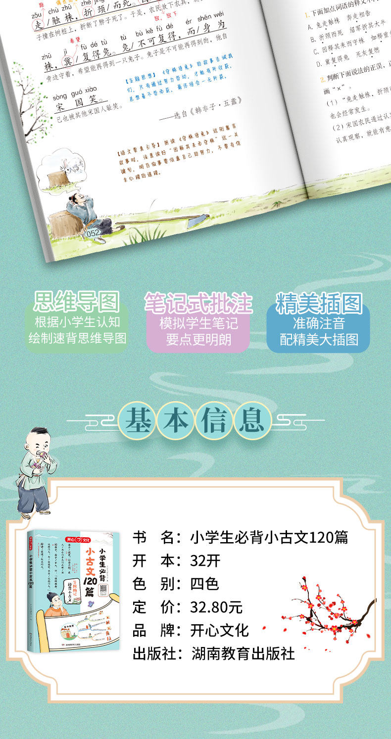 开心官方正版、小学生必背、小古文120篇、古诗词文言文、阅读与训练、全国通用