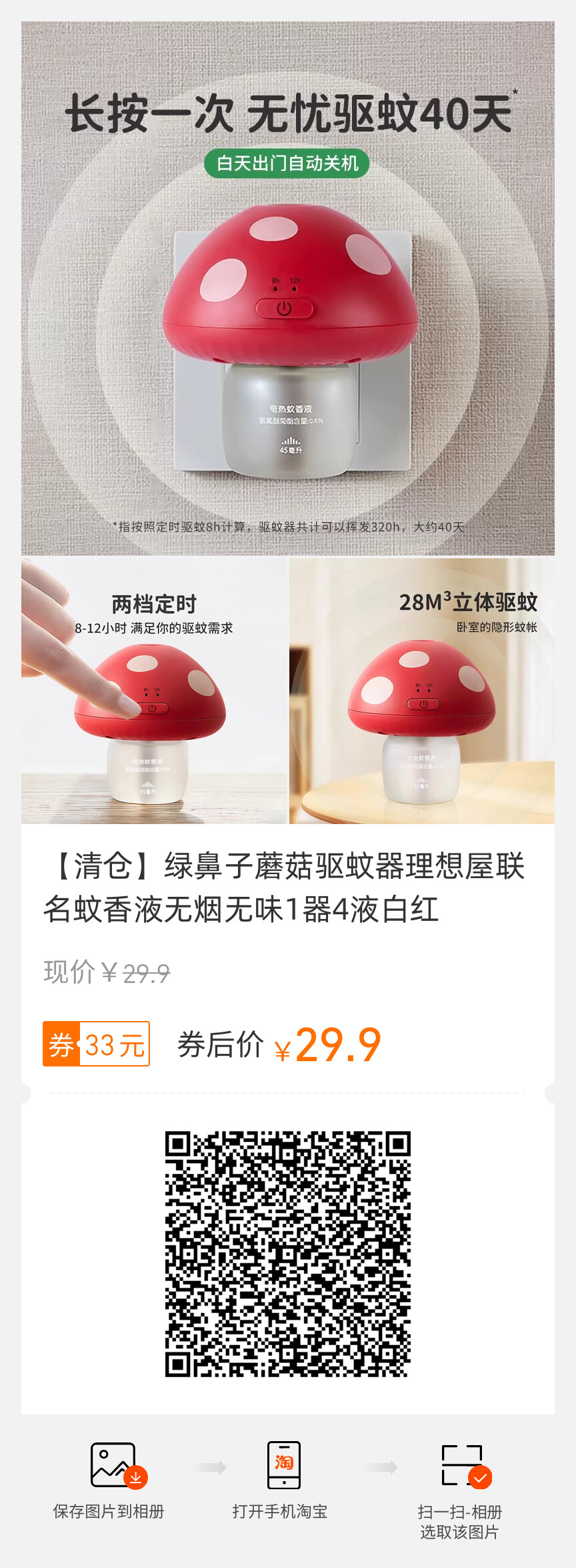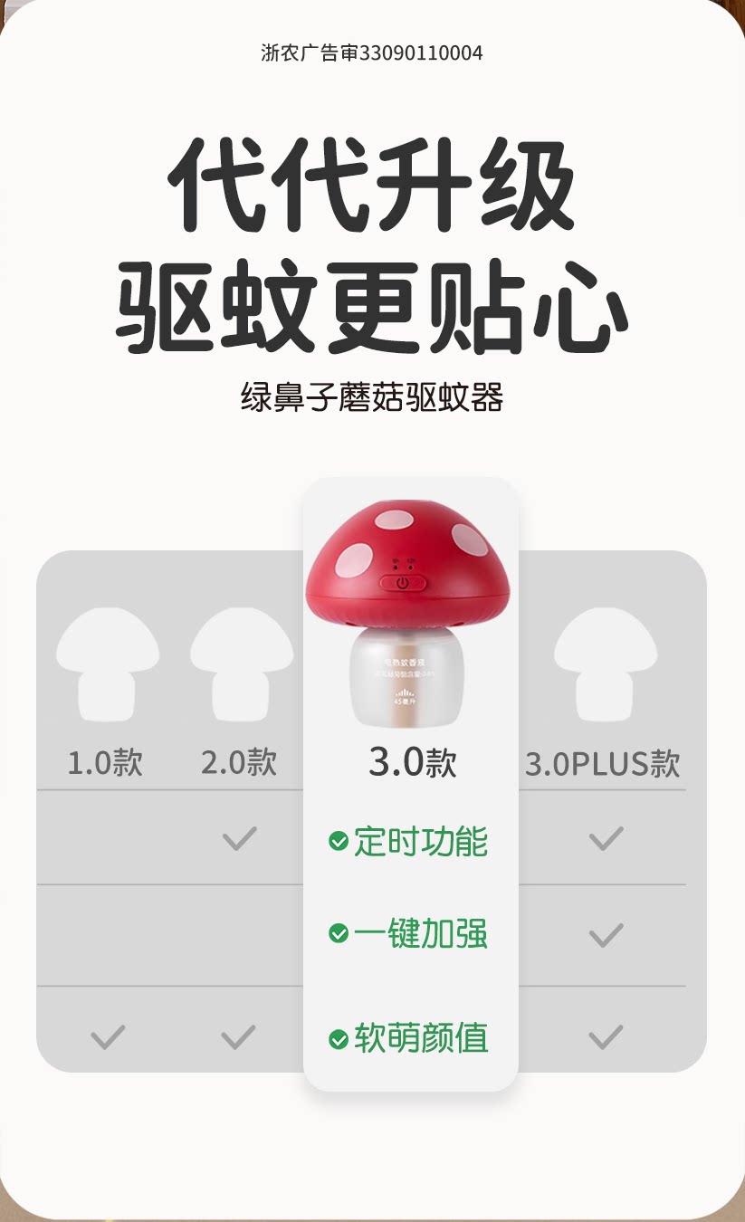 清仓、绿鼻子蘑菇驱蚊器、理想屋联名、蚊香液、无烟无味、1器4液