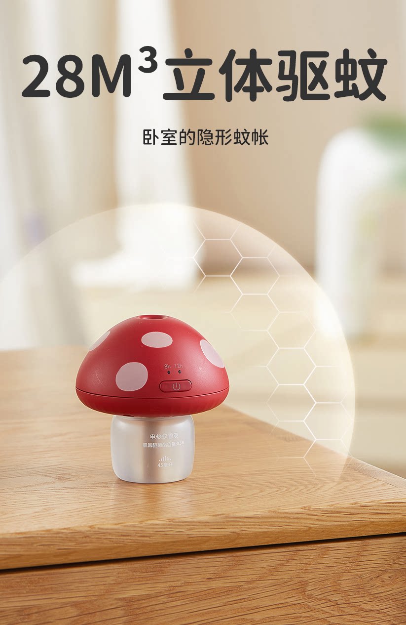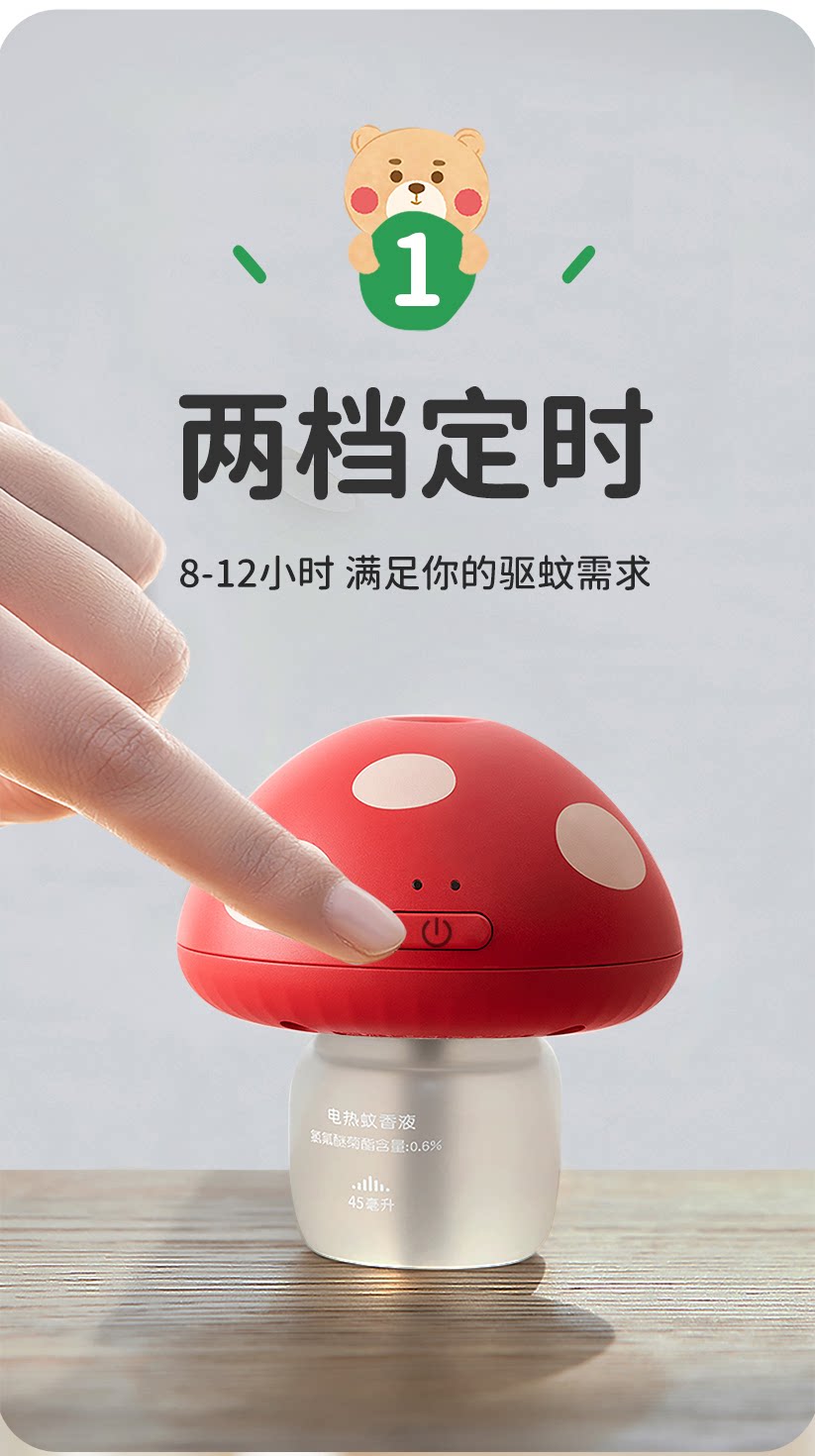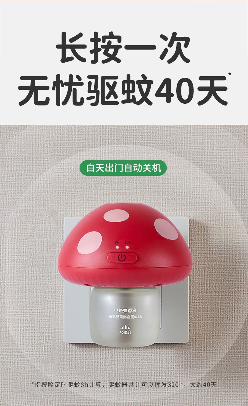【清仓】绿鼻子蘑菇驱蚊器理想屋联名蚊香液无烟无味1器4液白红