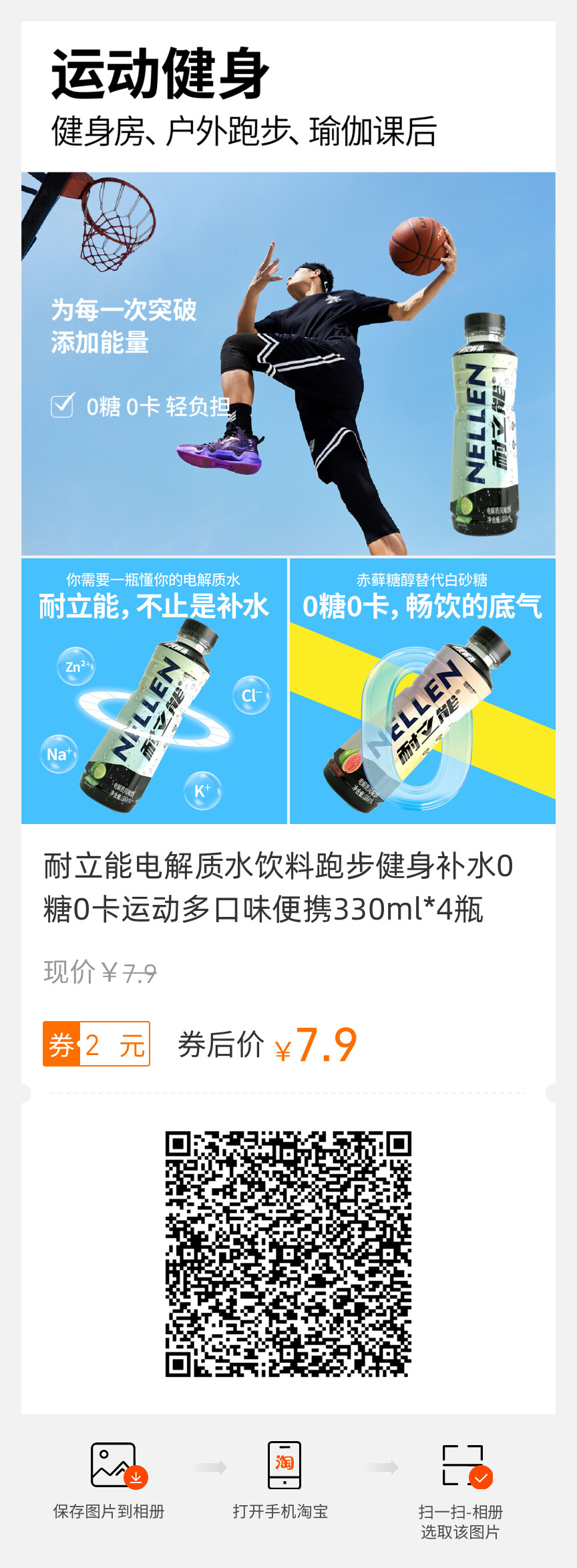 耐立能、电解质水饮料、跑步健身、0糖0卡、多口味、便携装