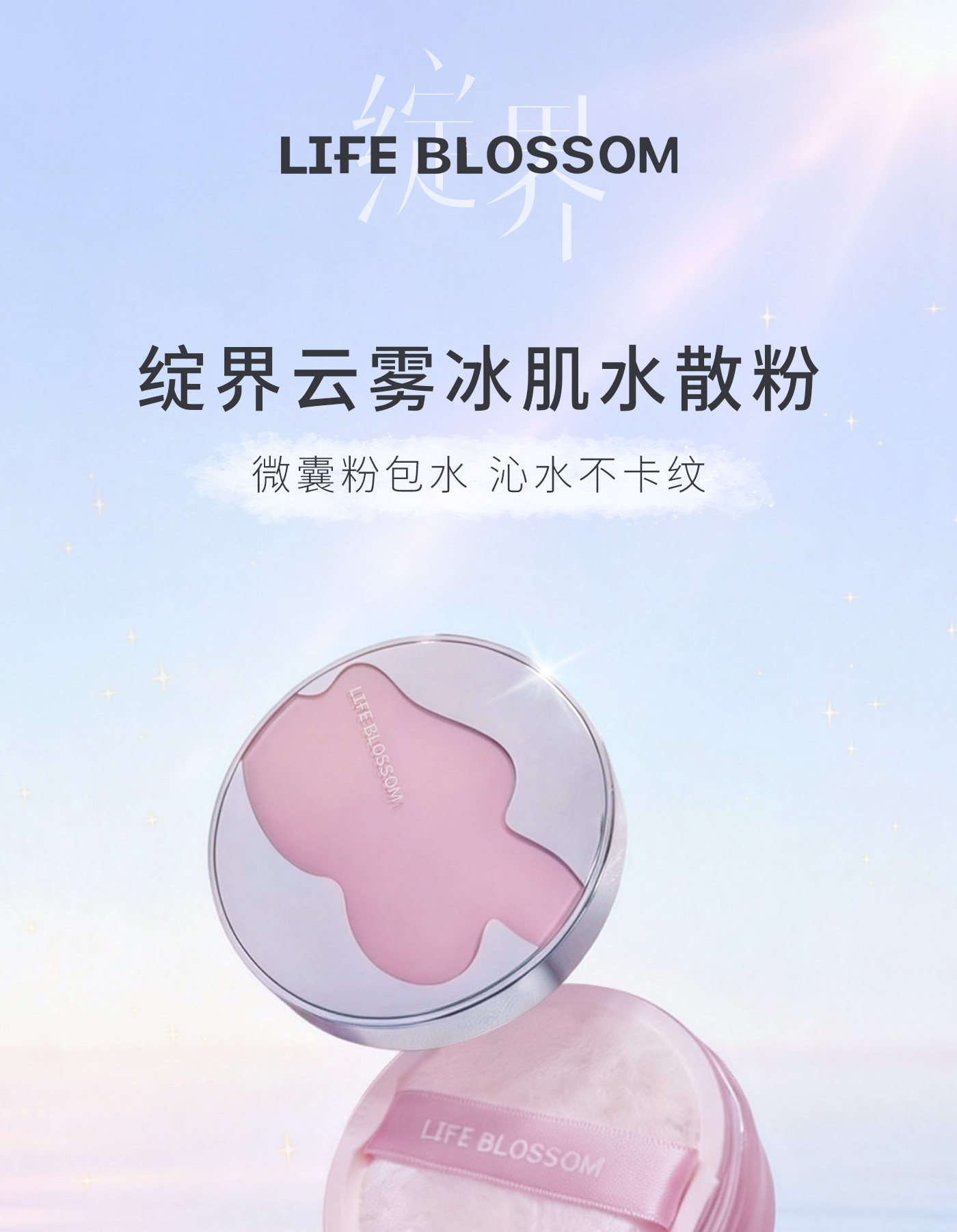 官方正品、绽界云雾冰肌水、散粉、控油防水、不脱妆、柔焦水感