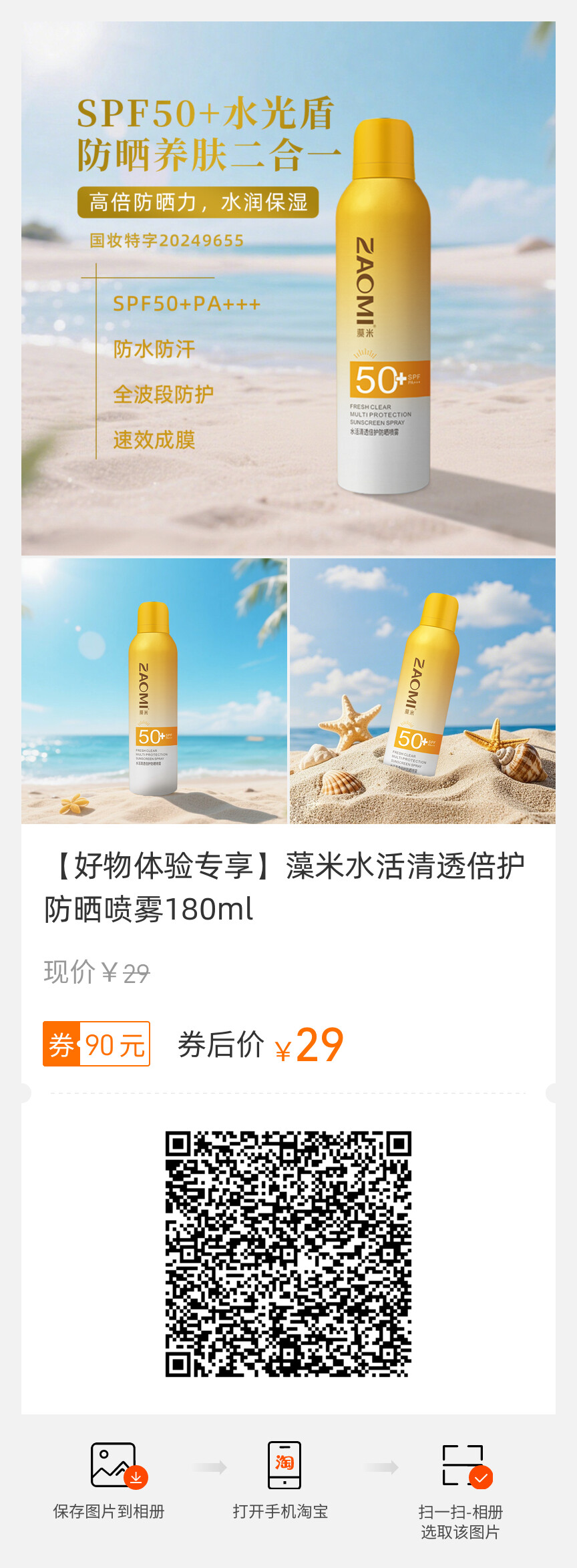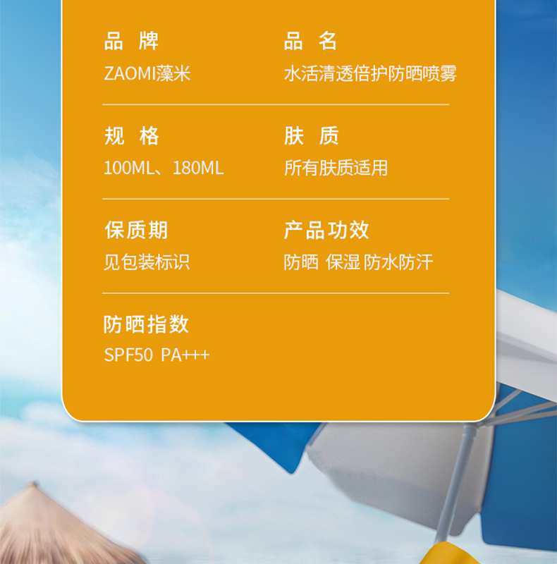 好物体验、藻米水活、清透倍护、防晒喷雾、180ml