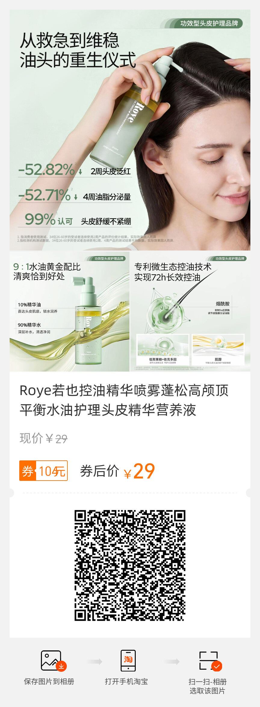 Roye若也、控油精华喷雾、蓬松高颅顶、平衡水油、护理头皮、精华营养液