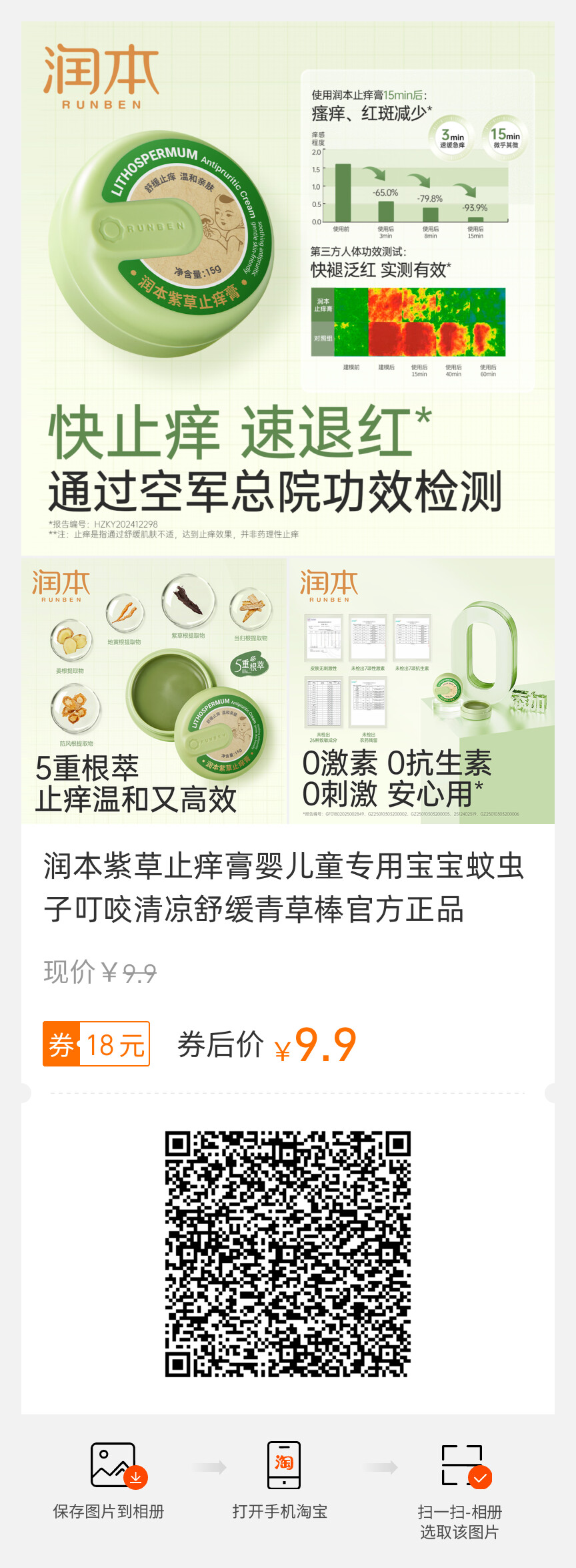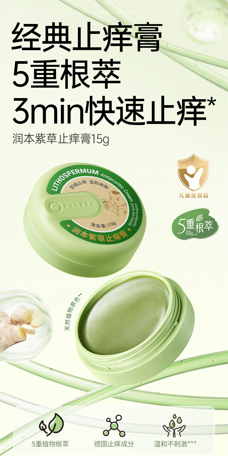 润本紫草止痒膏婴儿童专用宝宝蚊虫子叮咬清凉舒缓青草棒官方正品