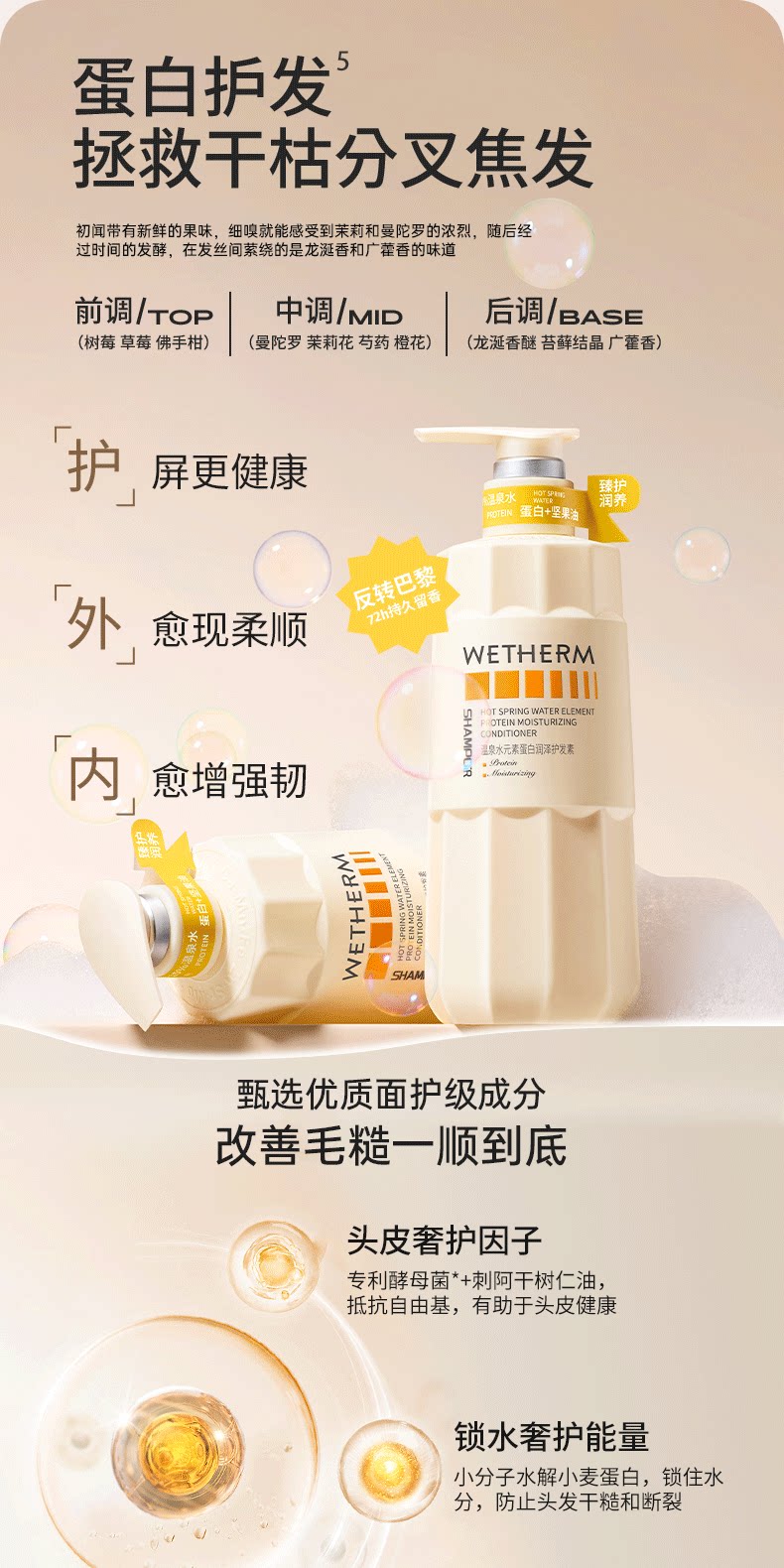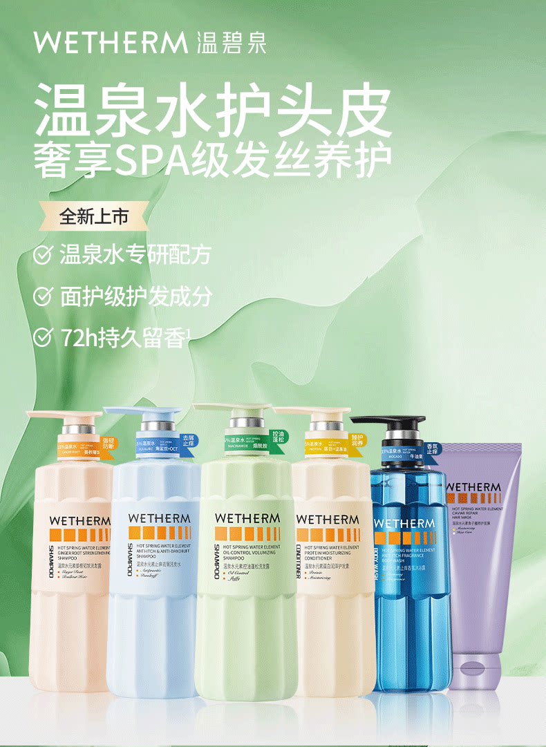 温碧泉水元素止痒香氛沐浴露头发养护72h留香控油蓬松洗发水正品1