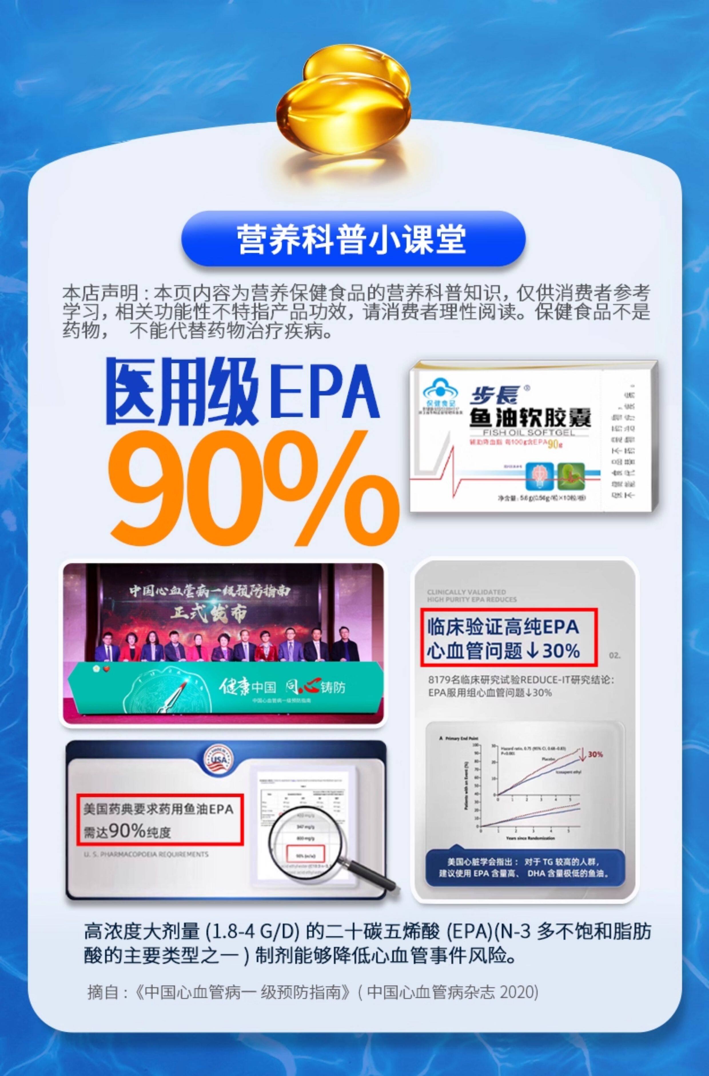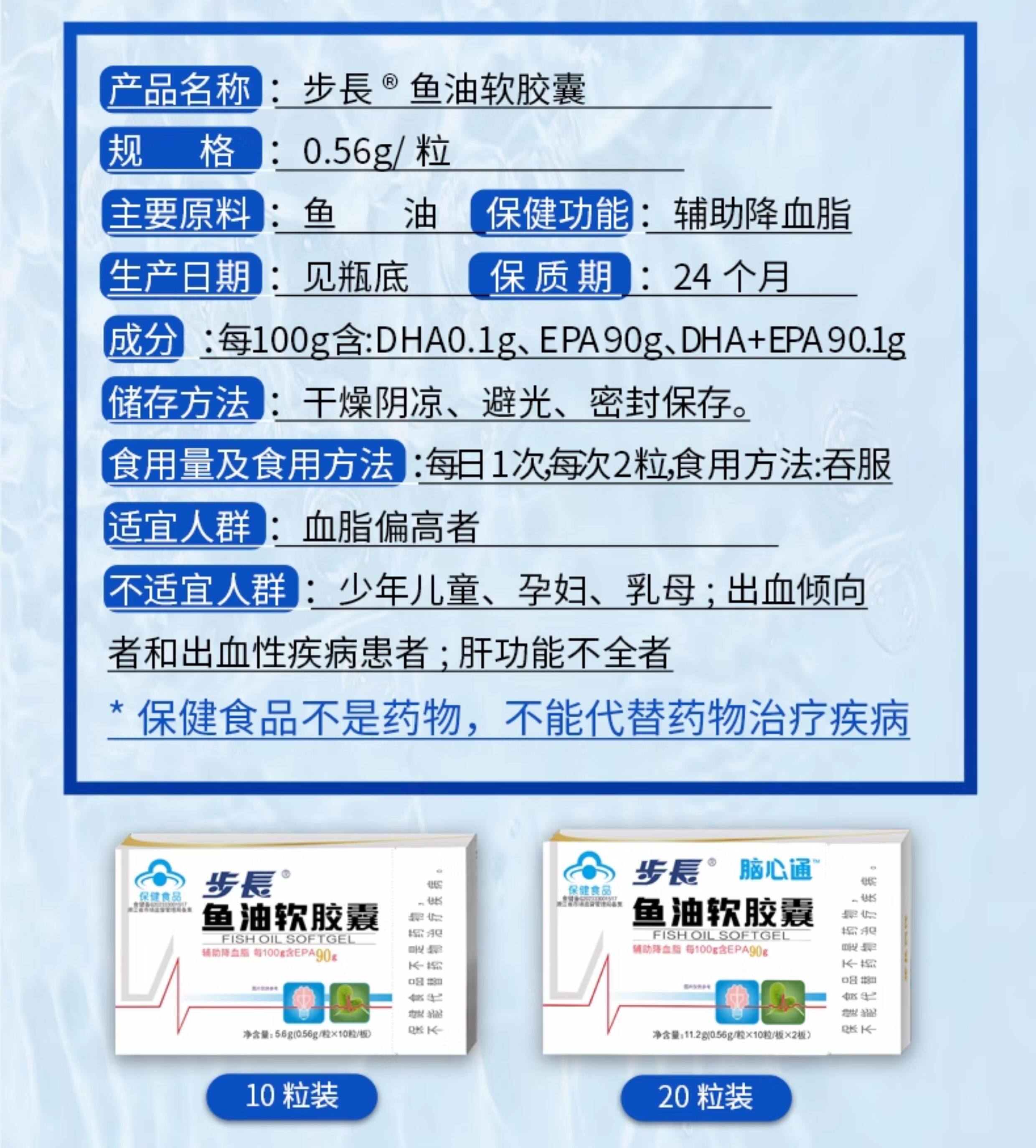 步长、EPA90%鱼油软胶囊、脑心通药企、辅助降血脂、进口原料、中老年人正品
