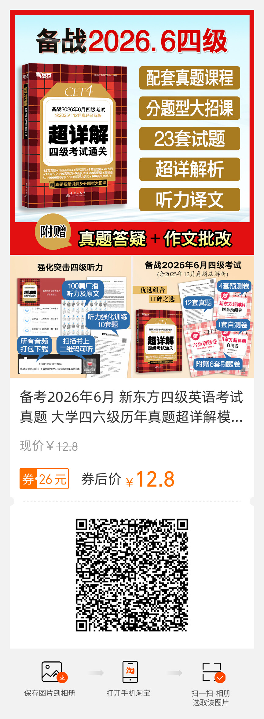 备考2026年6月、新东方四级英语、考试真题、大学四六级、超详解模拟试卷、专项预测训练资料