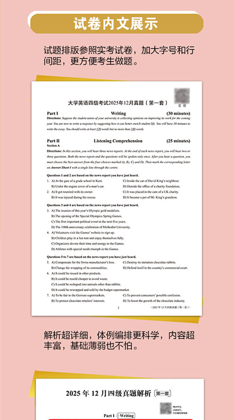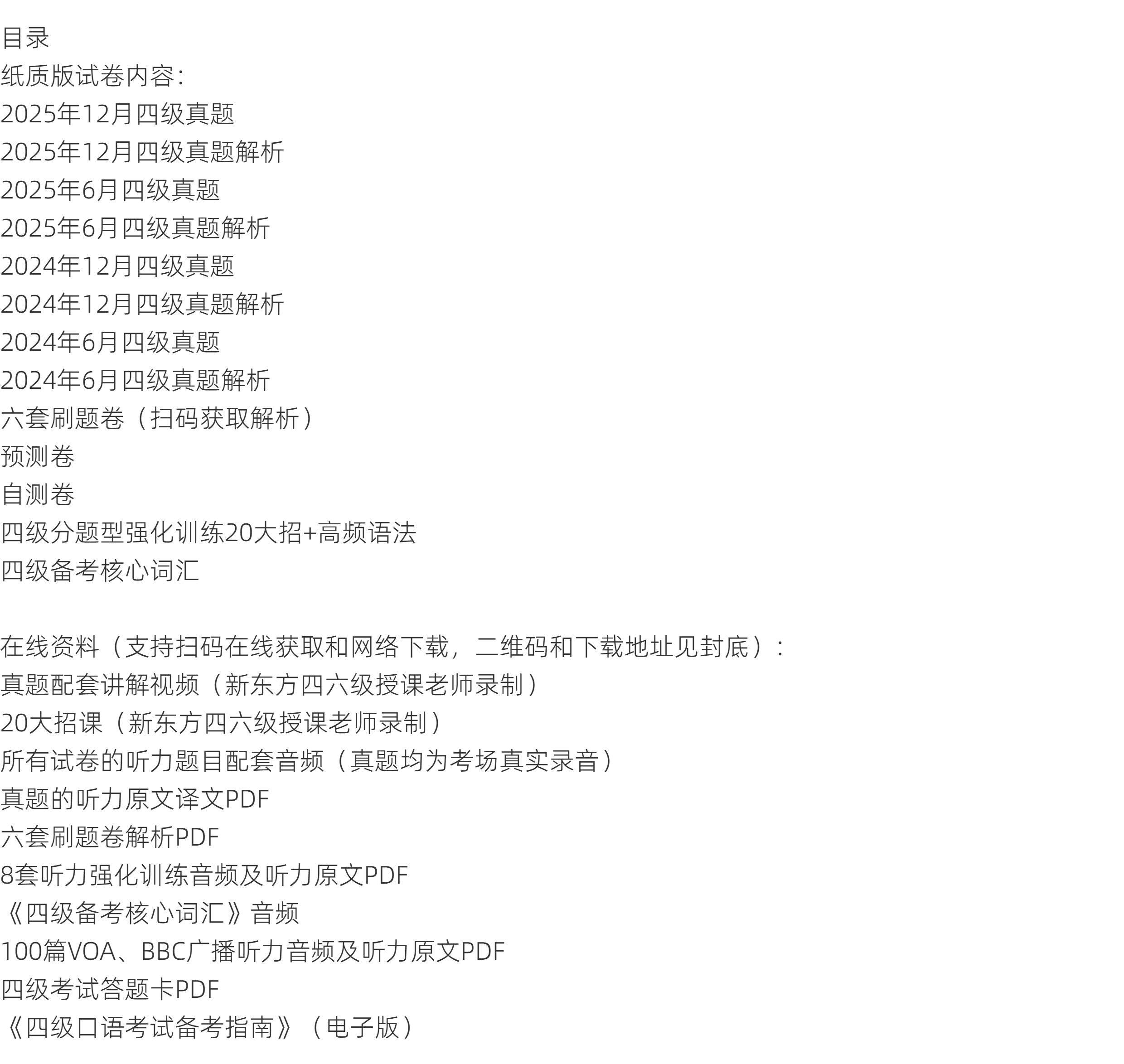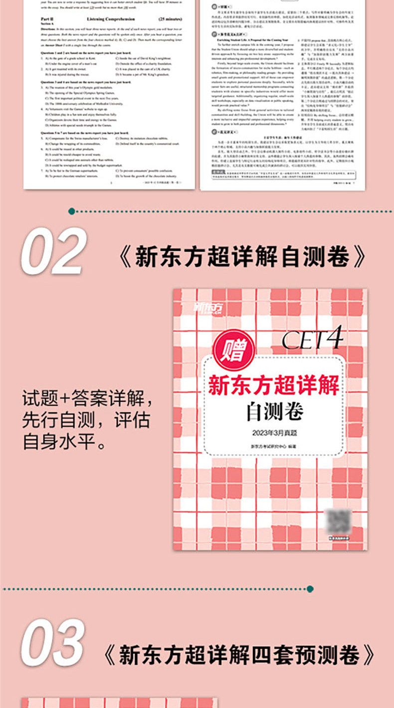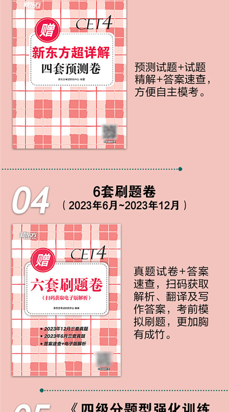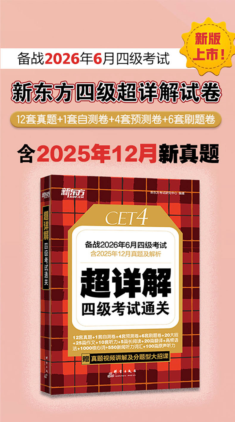 备考2026年6月 新东方四级英语考试真题 大学四六级历年真题超详解模拟试卷词汇书单词阅读理解听力翻译作文专项预测训练资料cet4