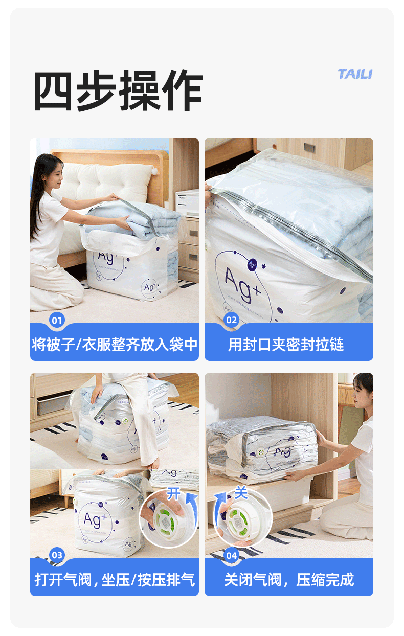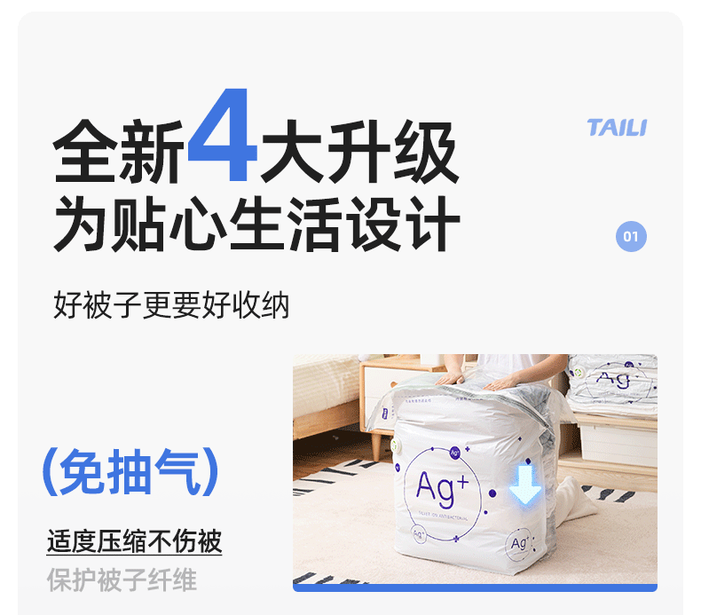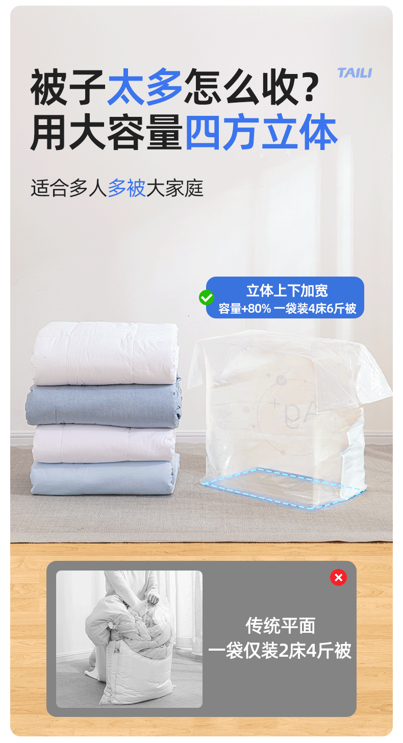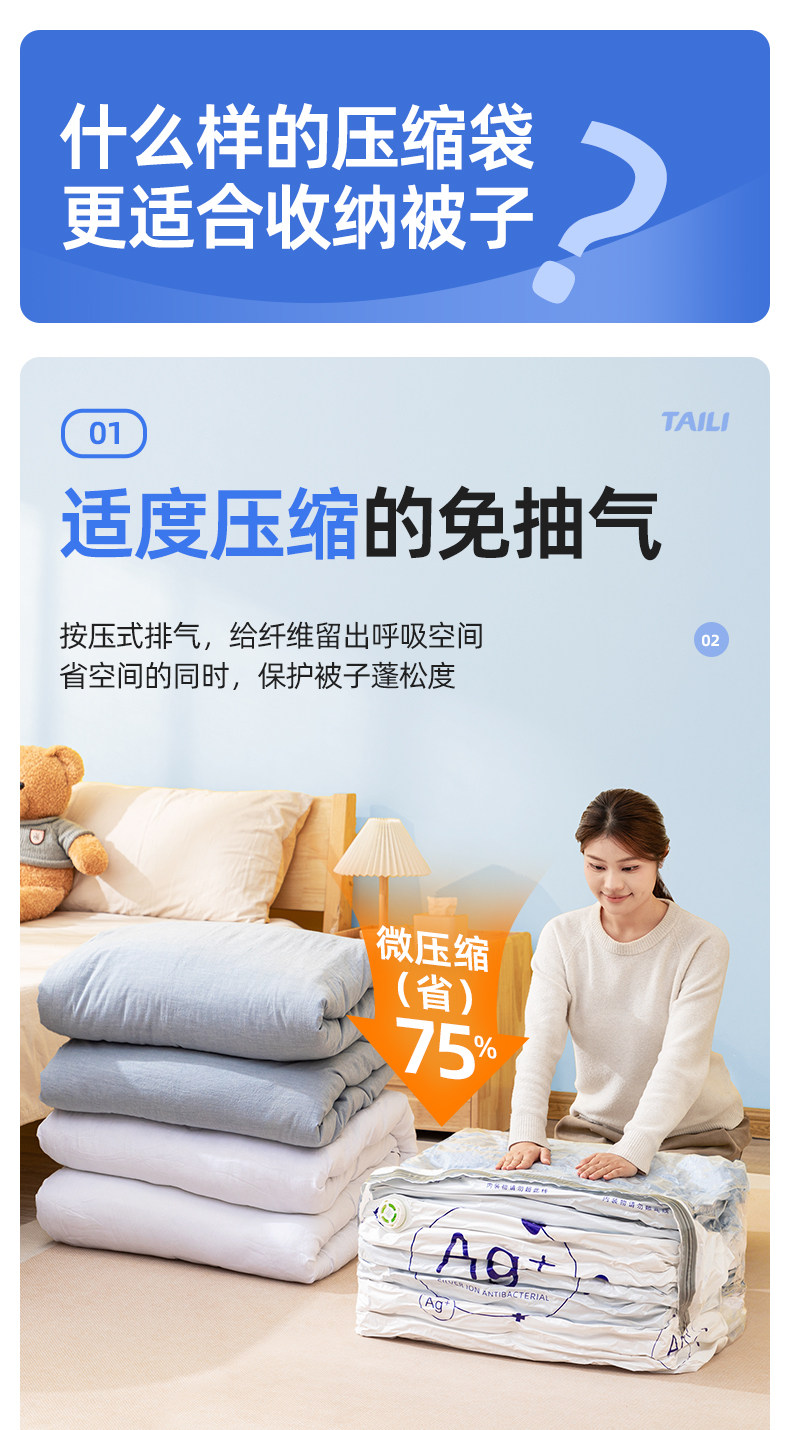 太力抗菌、真空压缩、收纳袋、装被子、免抽气、立体袋子