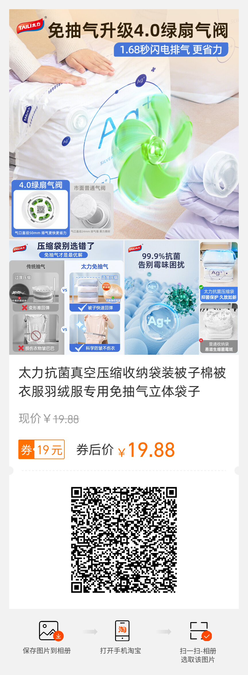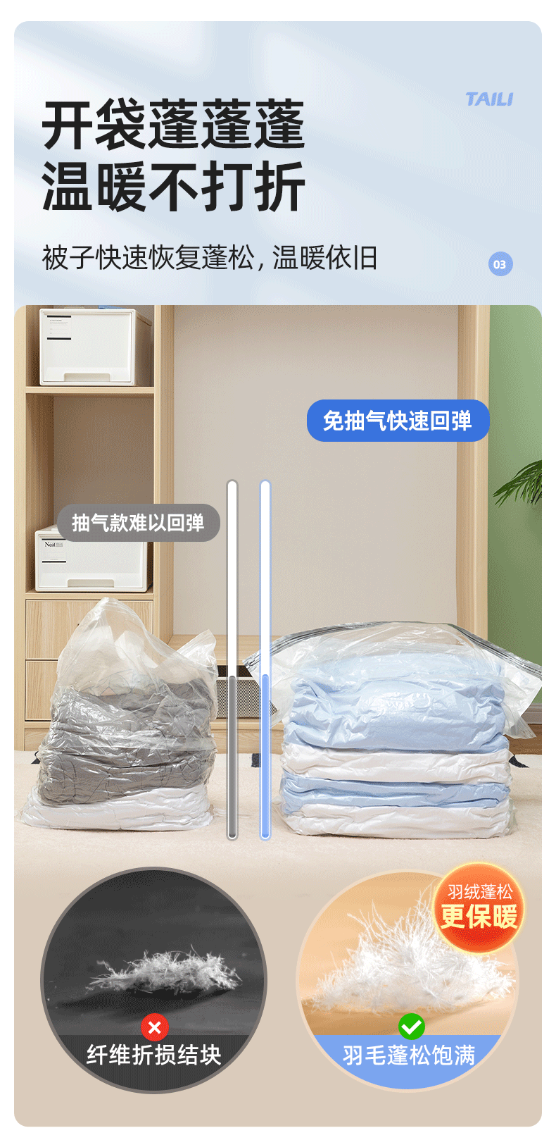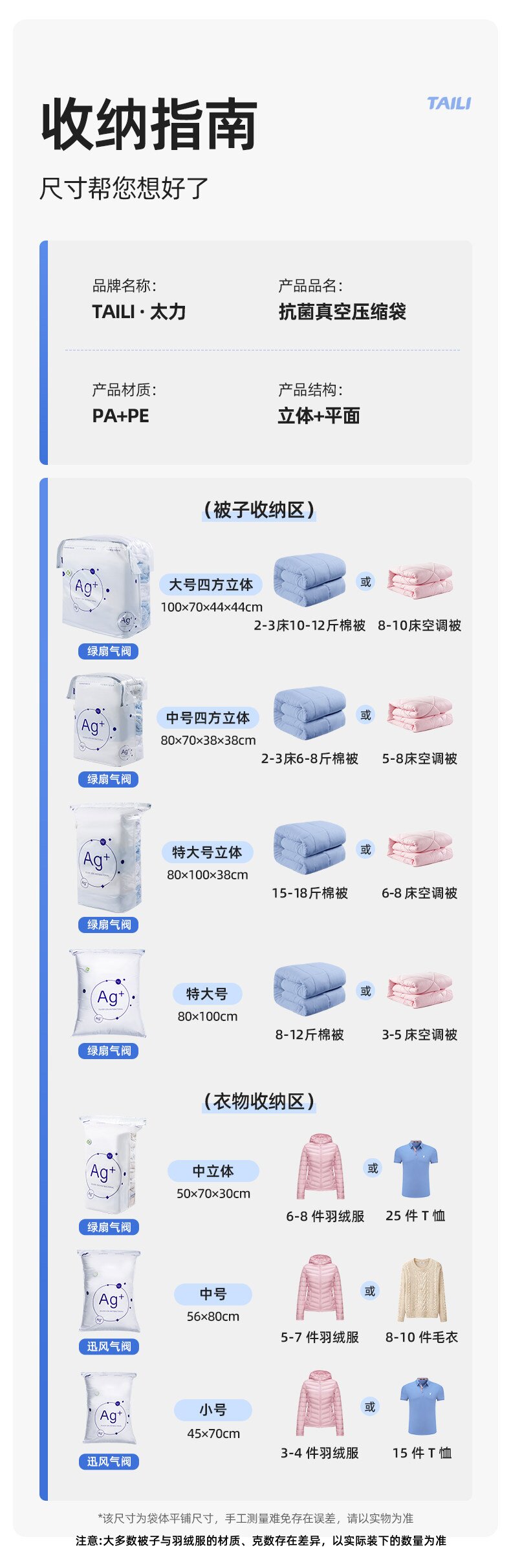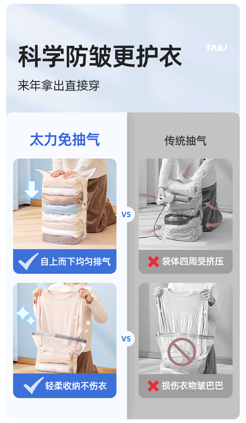 太力抗菌、真空压缩、收纳袋、装被子、免抽气、立体袋子