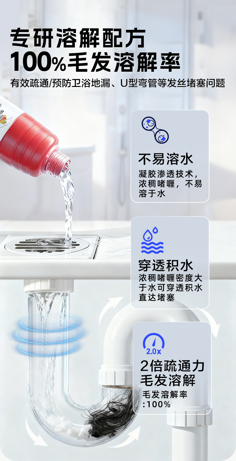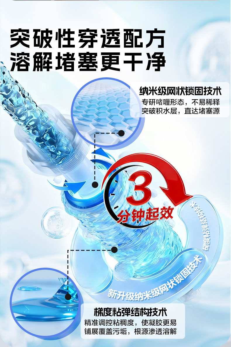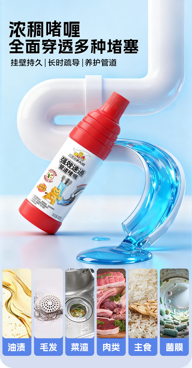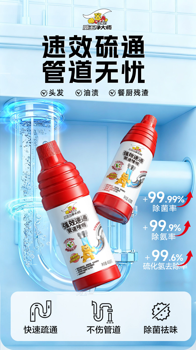 威王净大师、强力管道通、疏通剂、厨房下水管、除菌除异味、速通毛发残渣