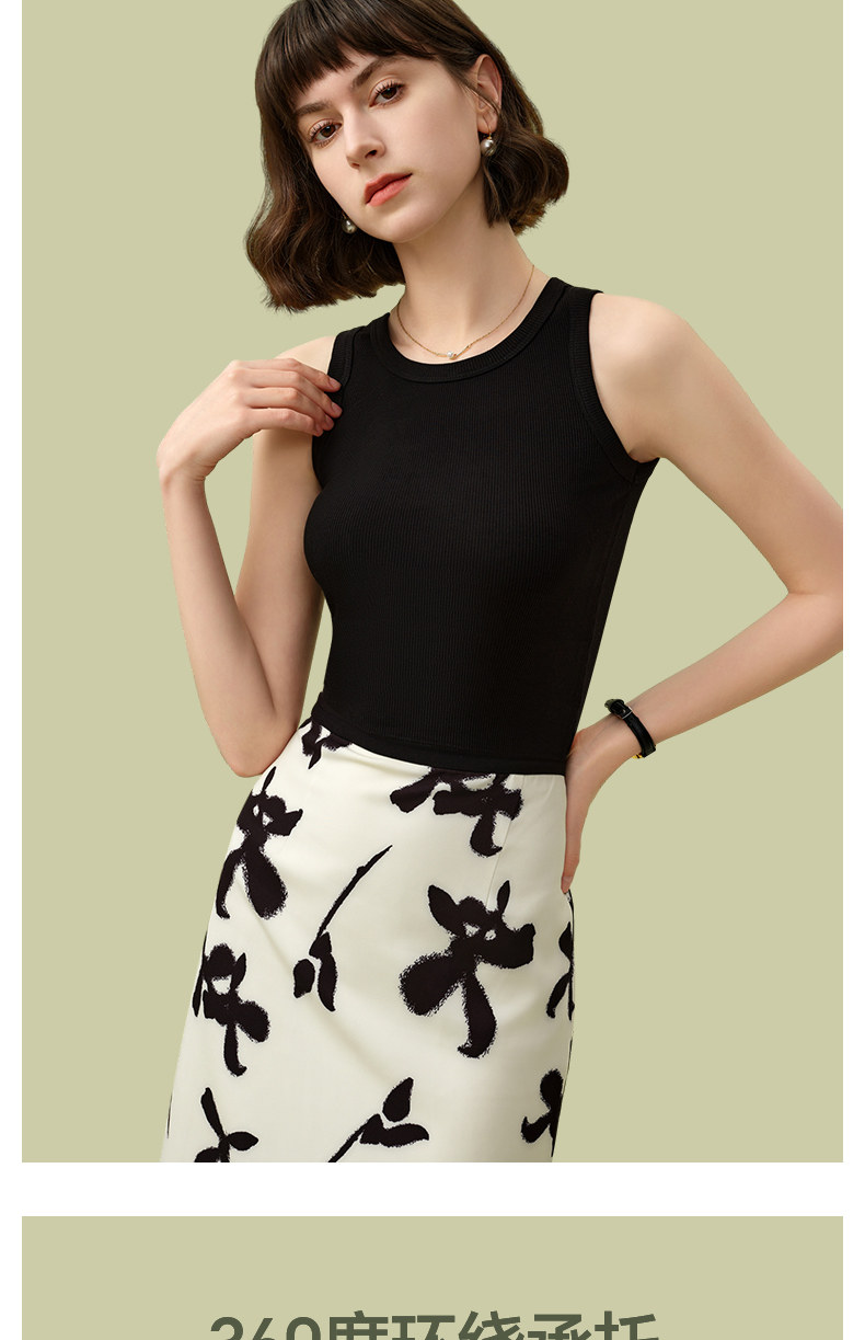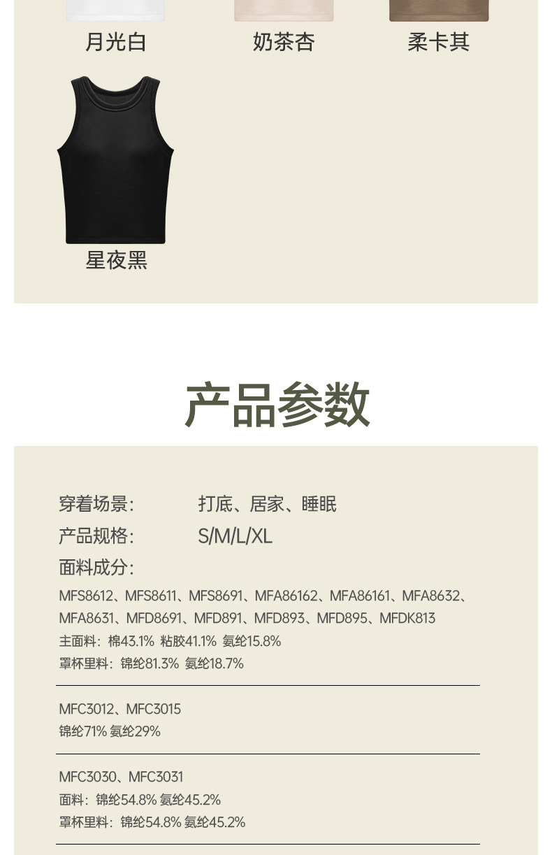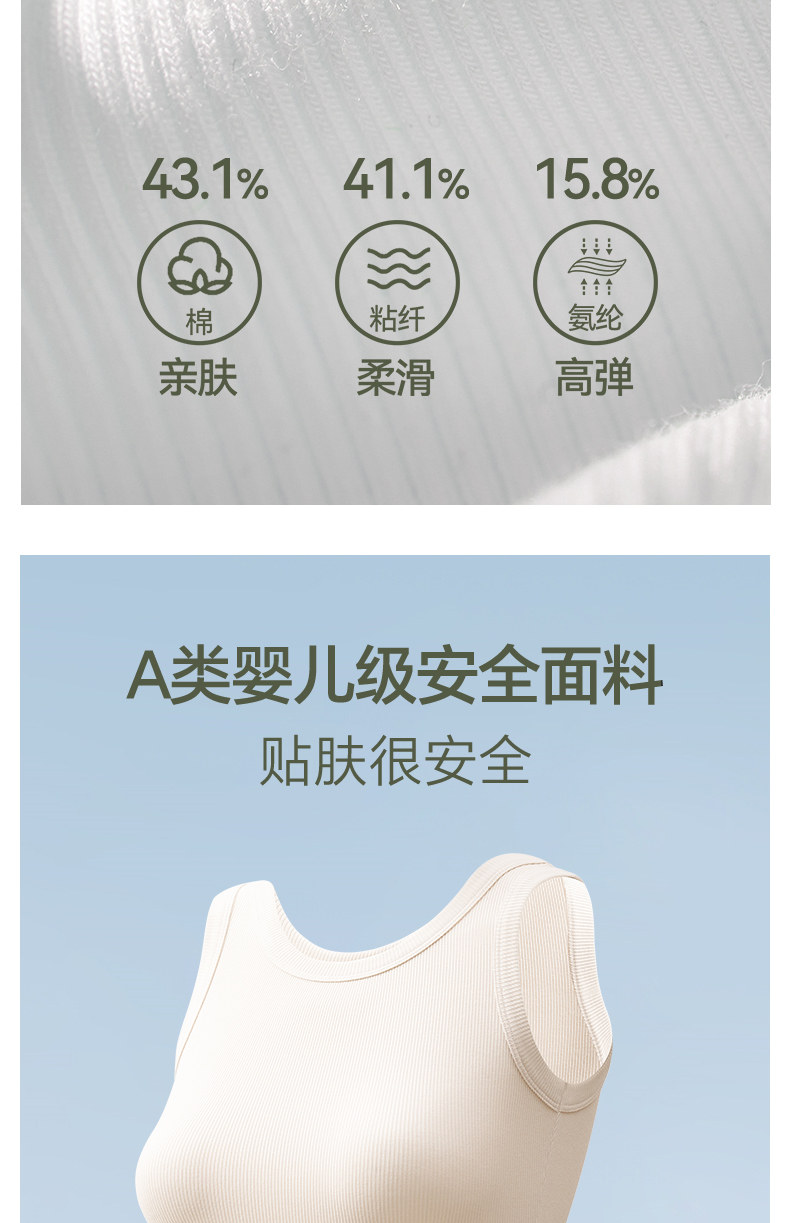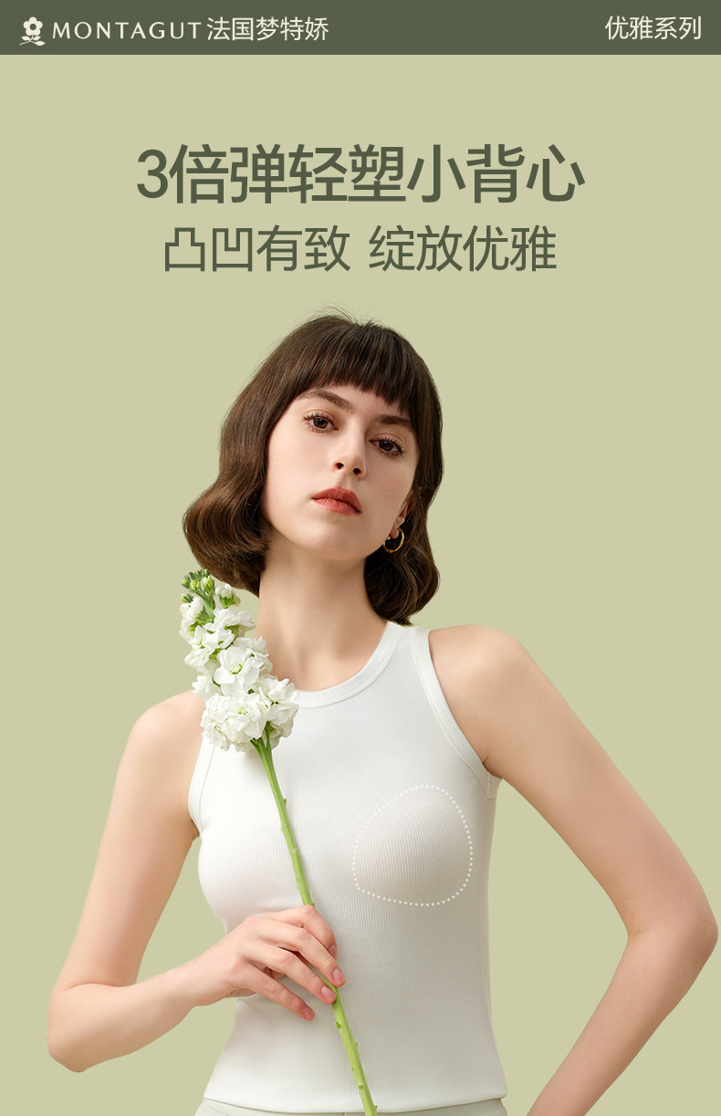 梦特娇、莫代尔背心、女内搭、免穿文胸一体、薄款上衣、带胸垫吊带内衣