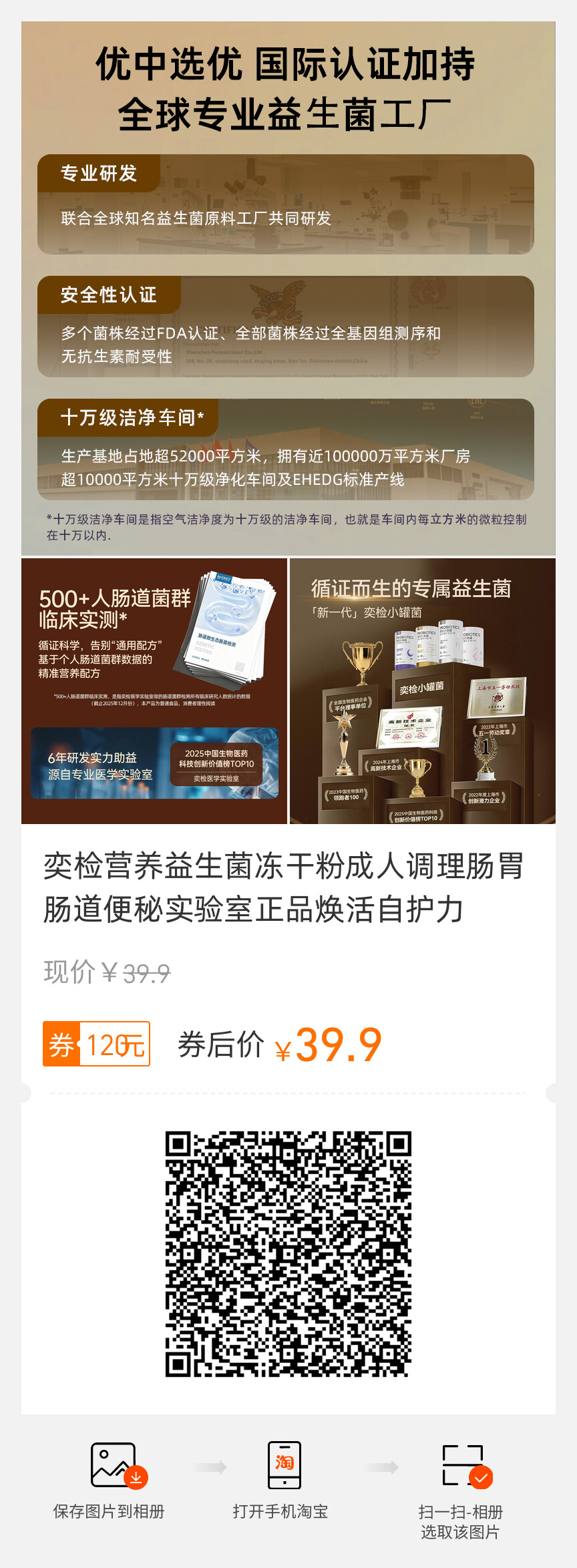奕检营养益生菌冻干粉成人调理肠胃肠道便秘实验室正品焕活自护力