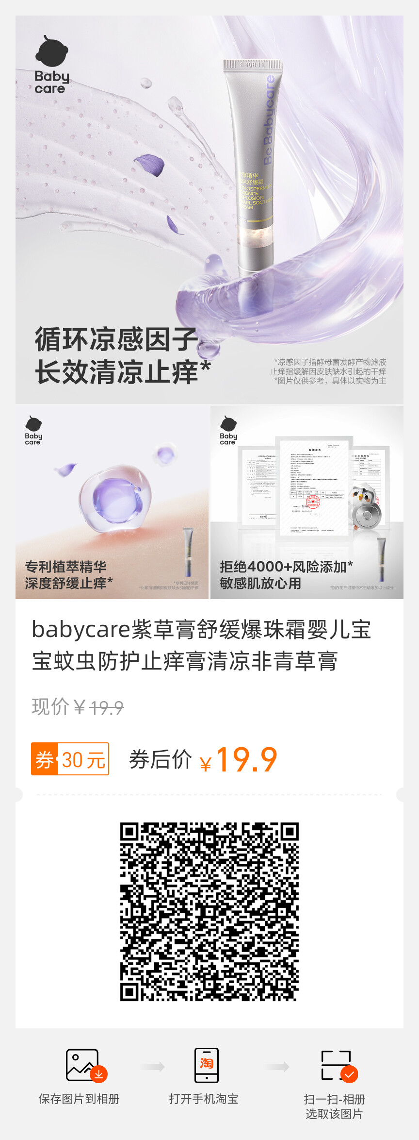 babycare、紫草膏、舒缓爆珠霜、婴儿宝宝、蚊虫防护、止痒清凉