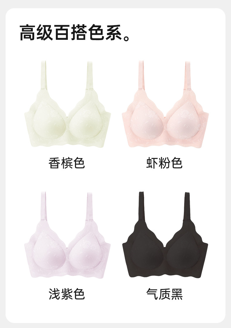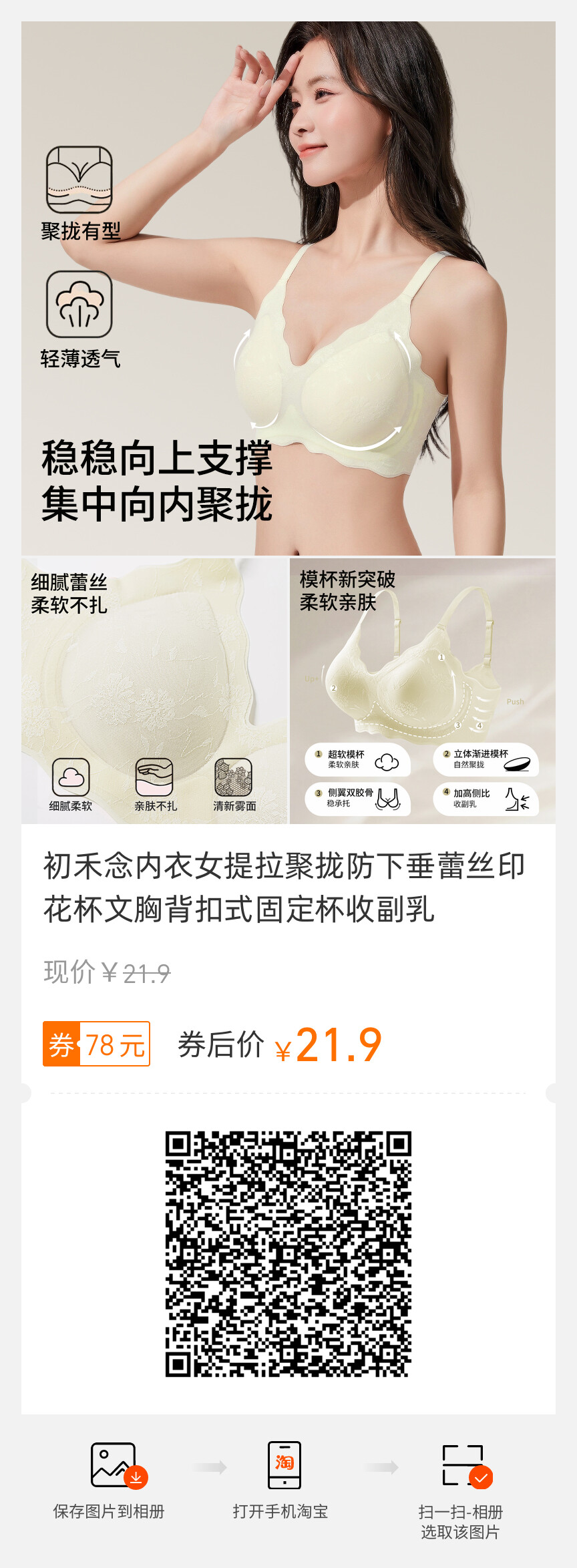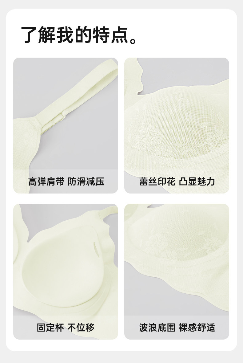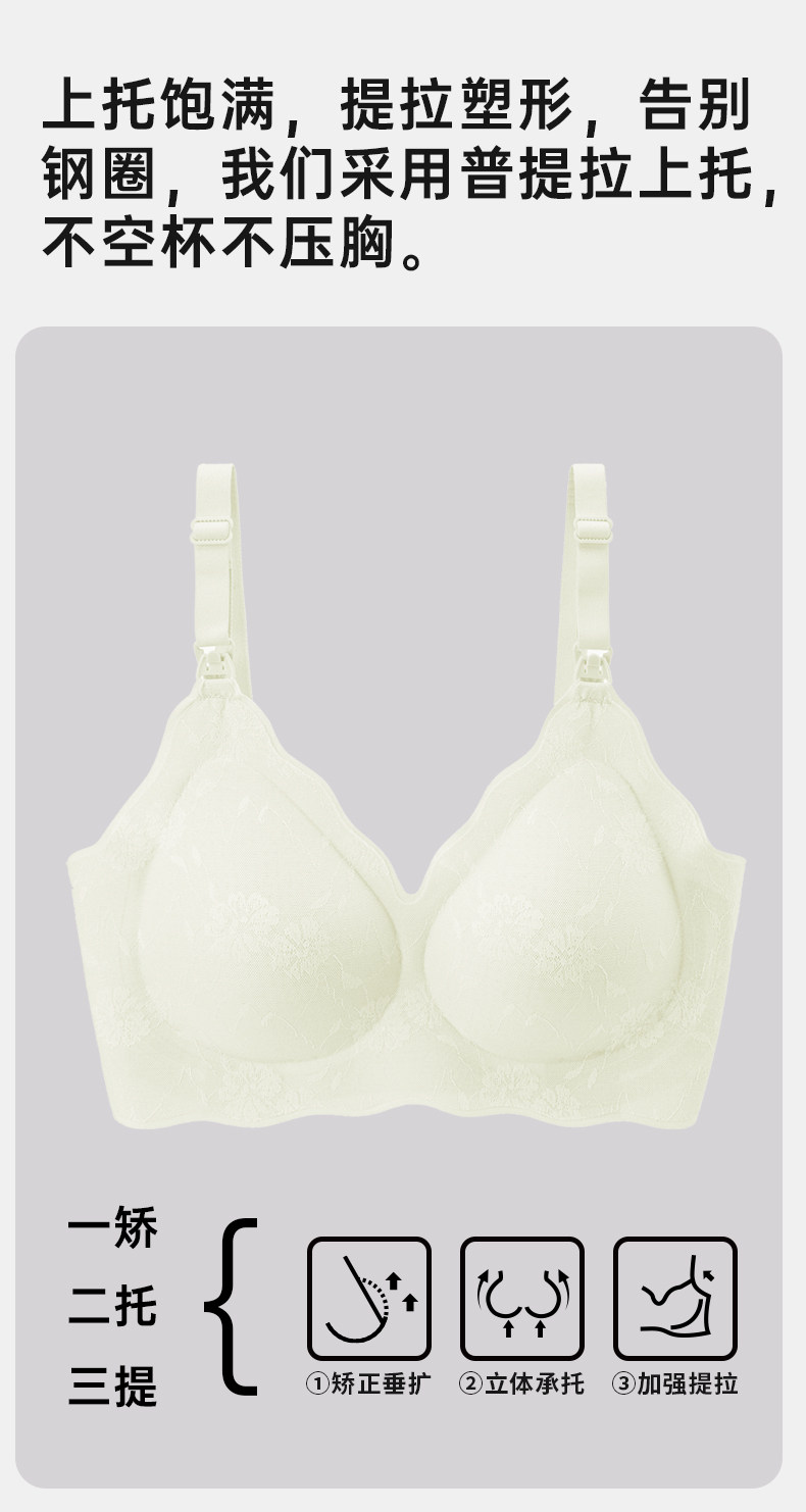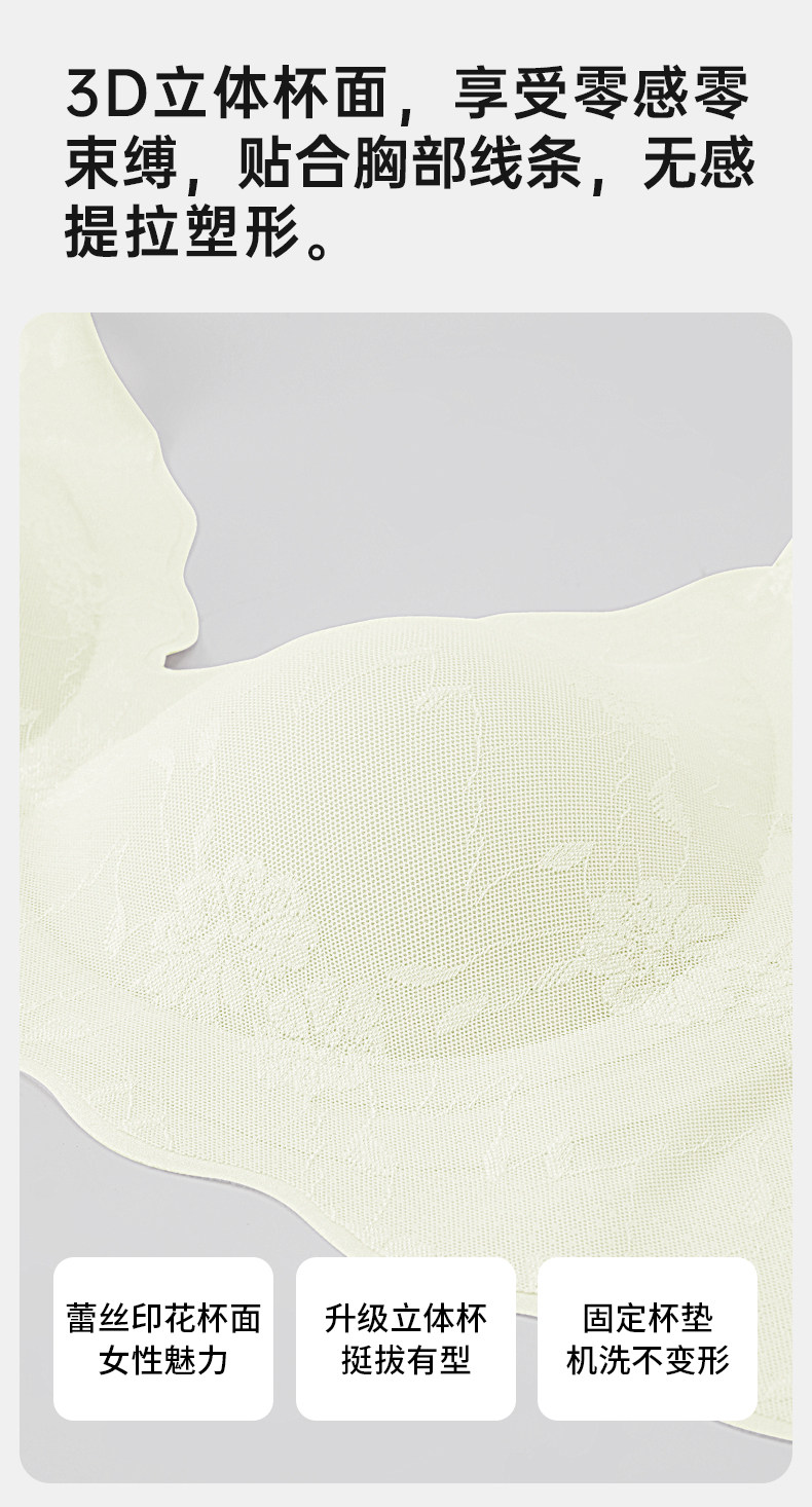 初禾念内衣、提拉聚拢、防下垂、蕾丝印花、固定杯、收副乳