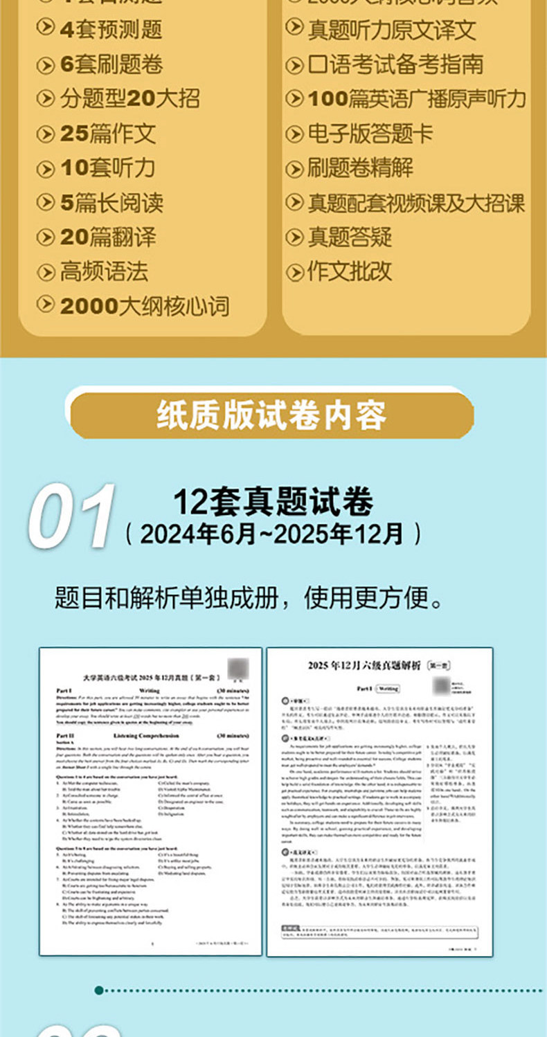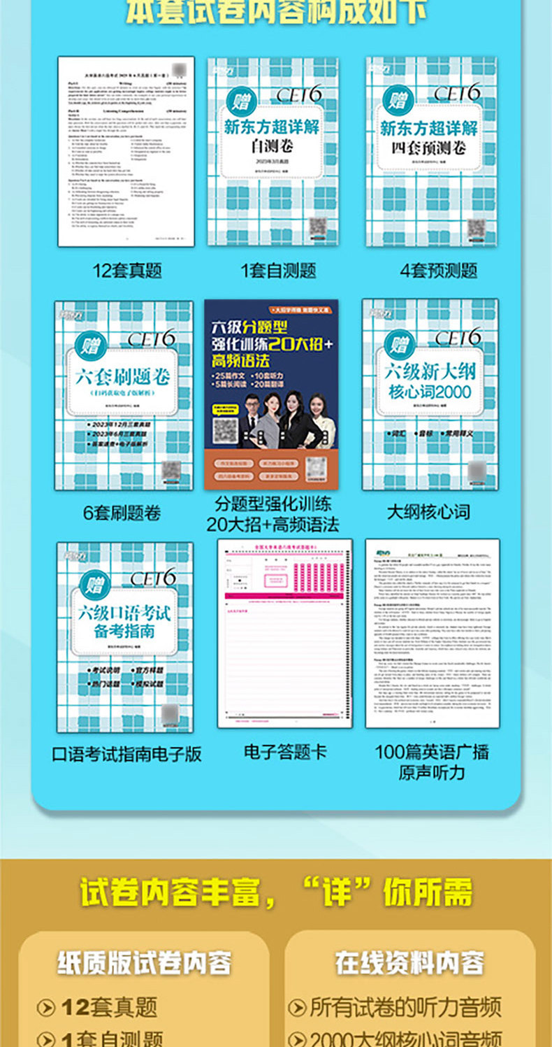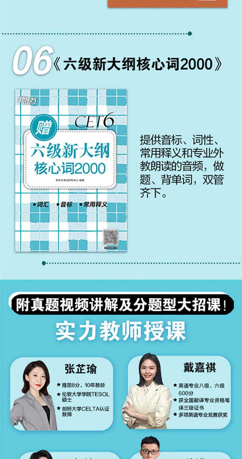 备考2026年6月、新东方英语六级、真题试卷、四六级考试、超详解、专项训练资料