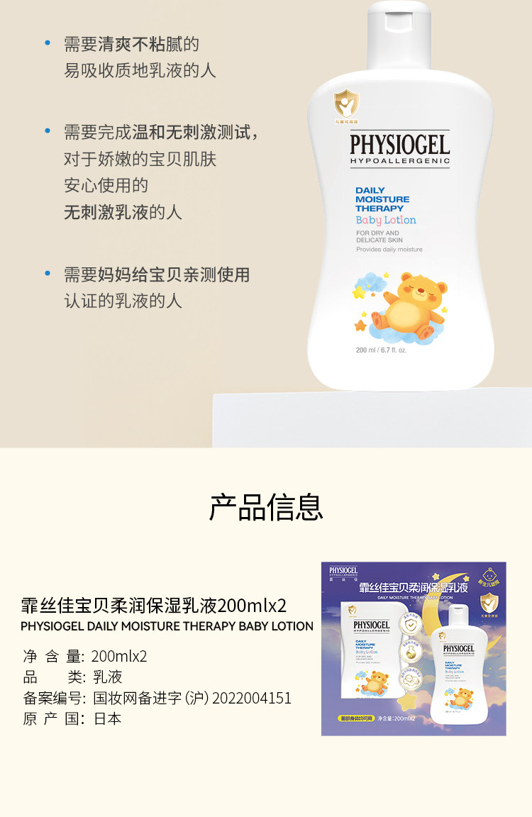 霏丝佳、婴幼儿润肤乳、儿童宝宝、新生儿、干燥滋润、保湿正品
