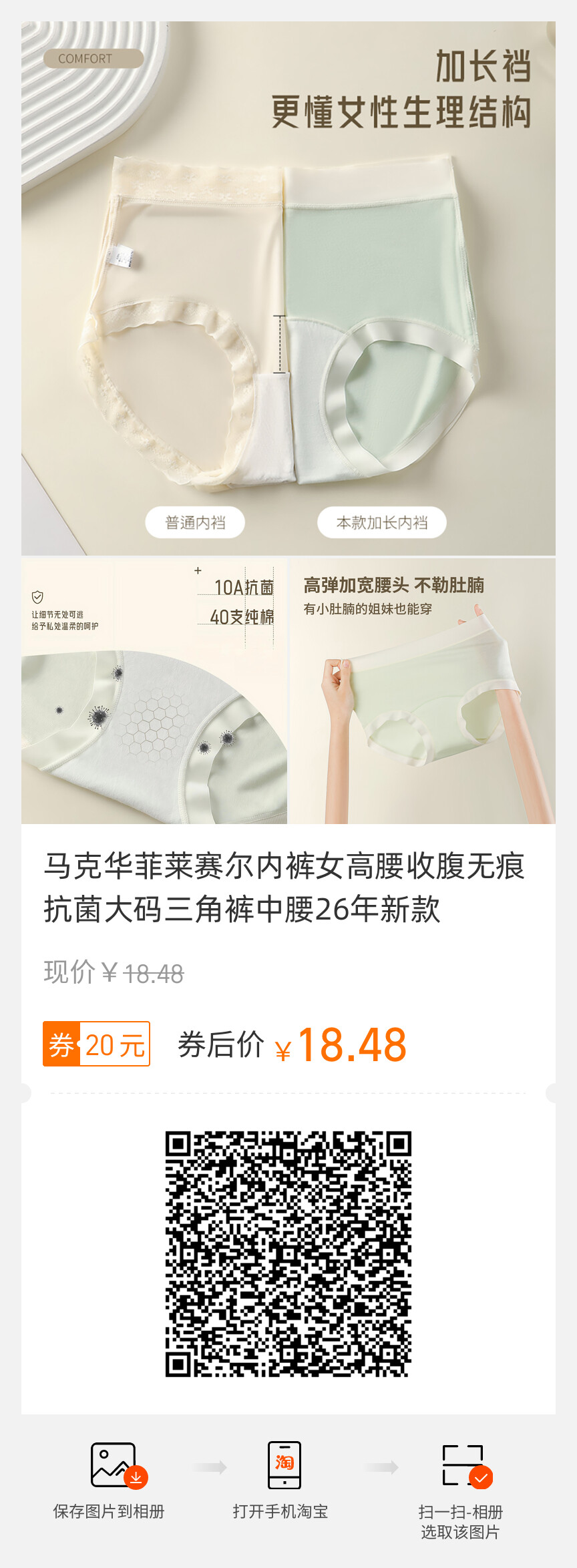 马克华菲、莱赛尔内裤、女款、高腰收腹、无痕抗菌、大码三角裤