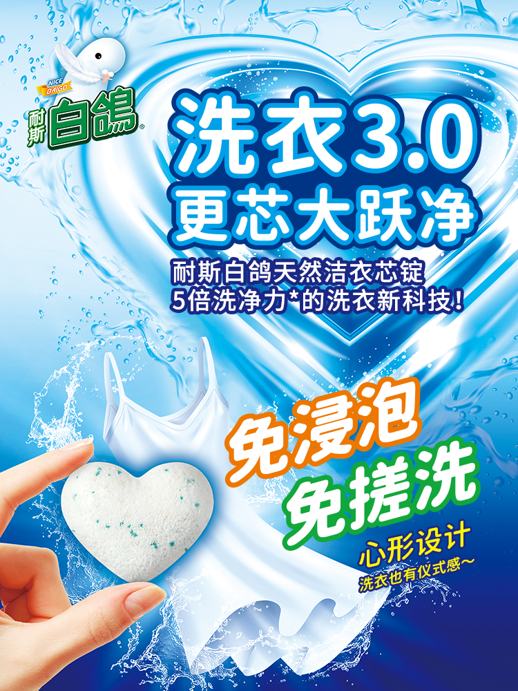 白鸽 天然洁衣芯锭 免浸泡 免搓洗 洗衣粉状凝珠 耐斯