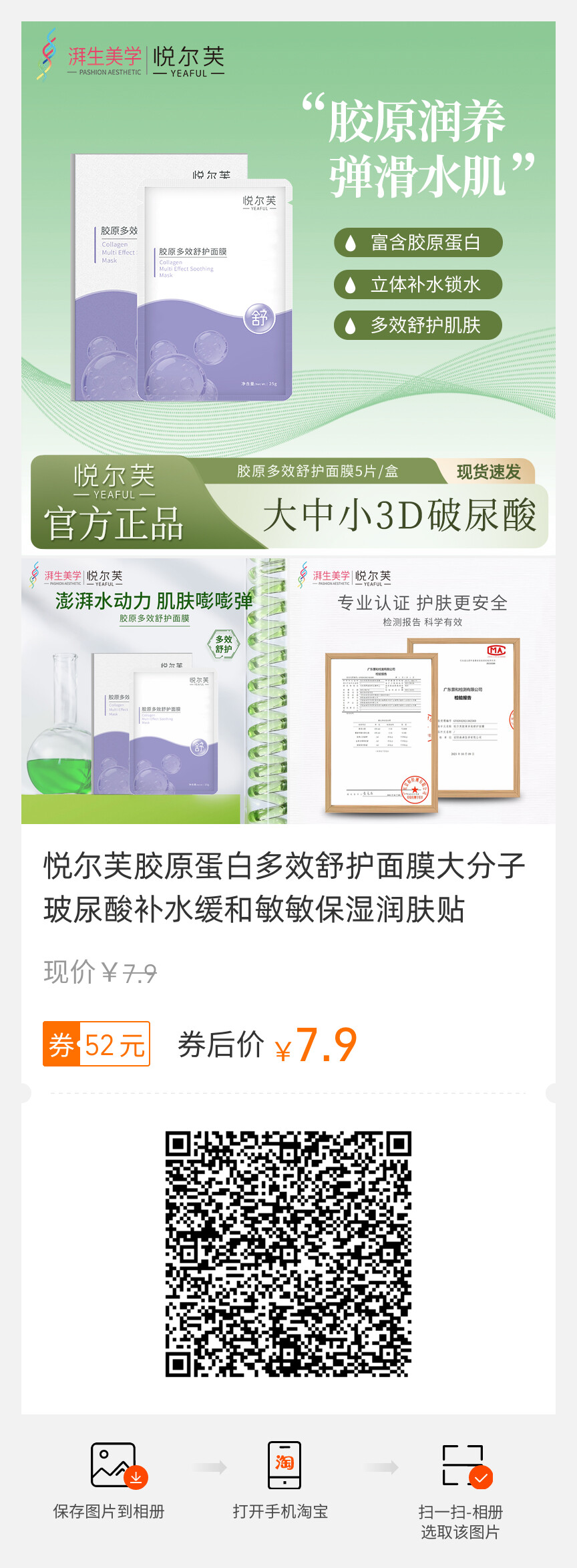 悦尔芙 胶原蛋白 多效舒护面膜 大分子玻尿酸 补水 保湿润肤