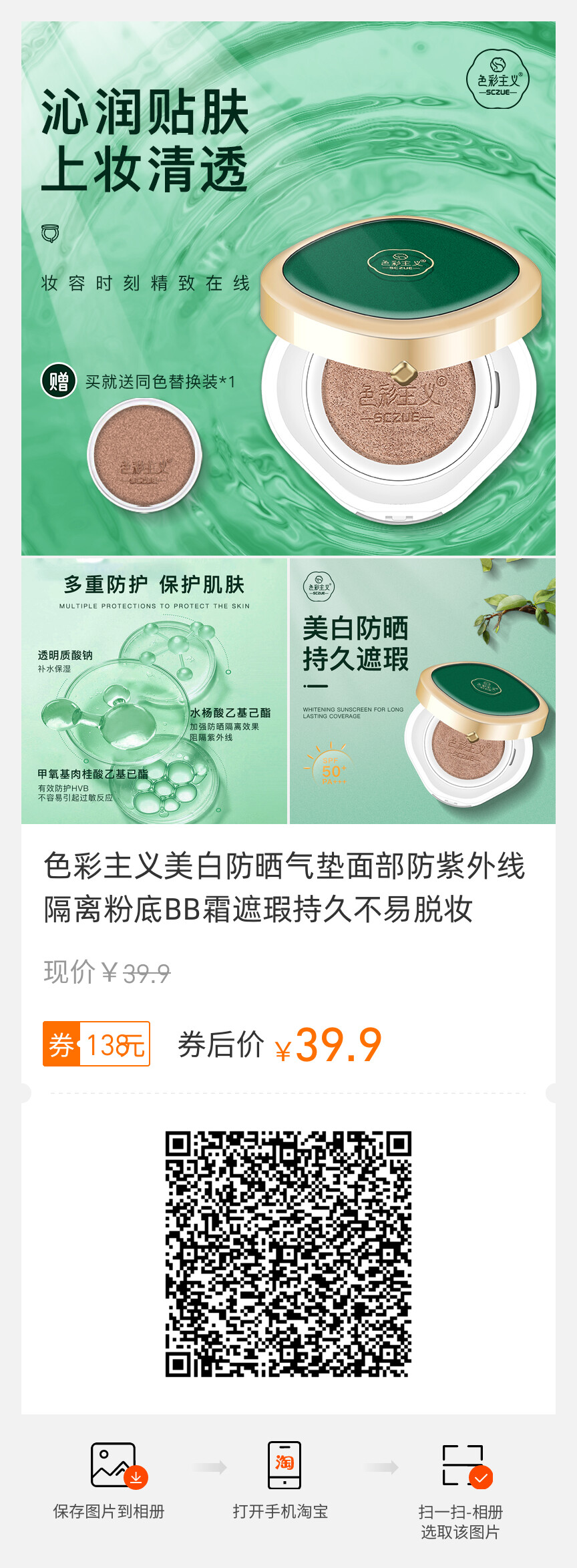 色彩主义、美白防晒气垫、防紫外线、隔离粉底、BB霜、遮瑕持久