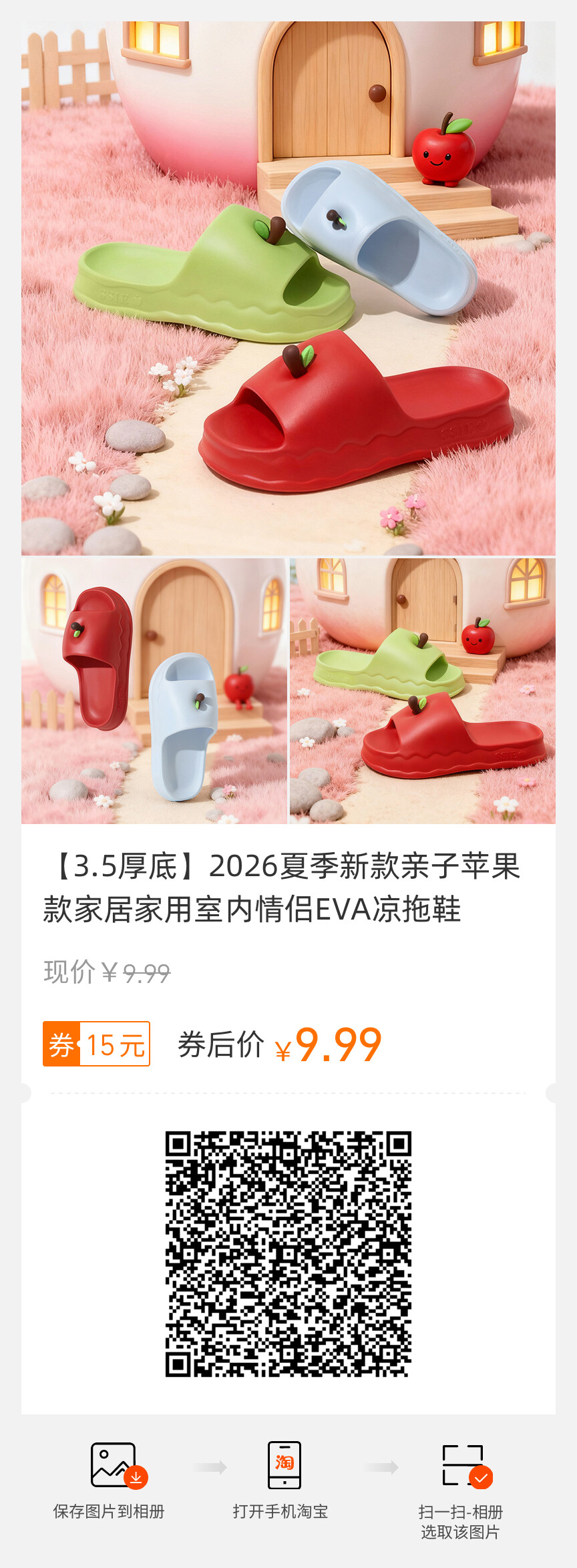 【3.5厚底】2026夏季新款亲子苹果款家居家用室内情侣EVA凉拖鞋