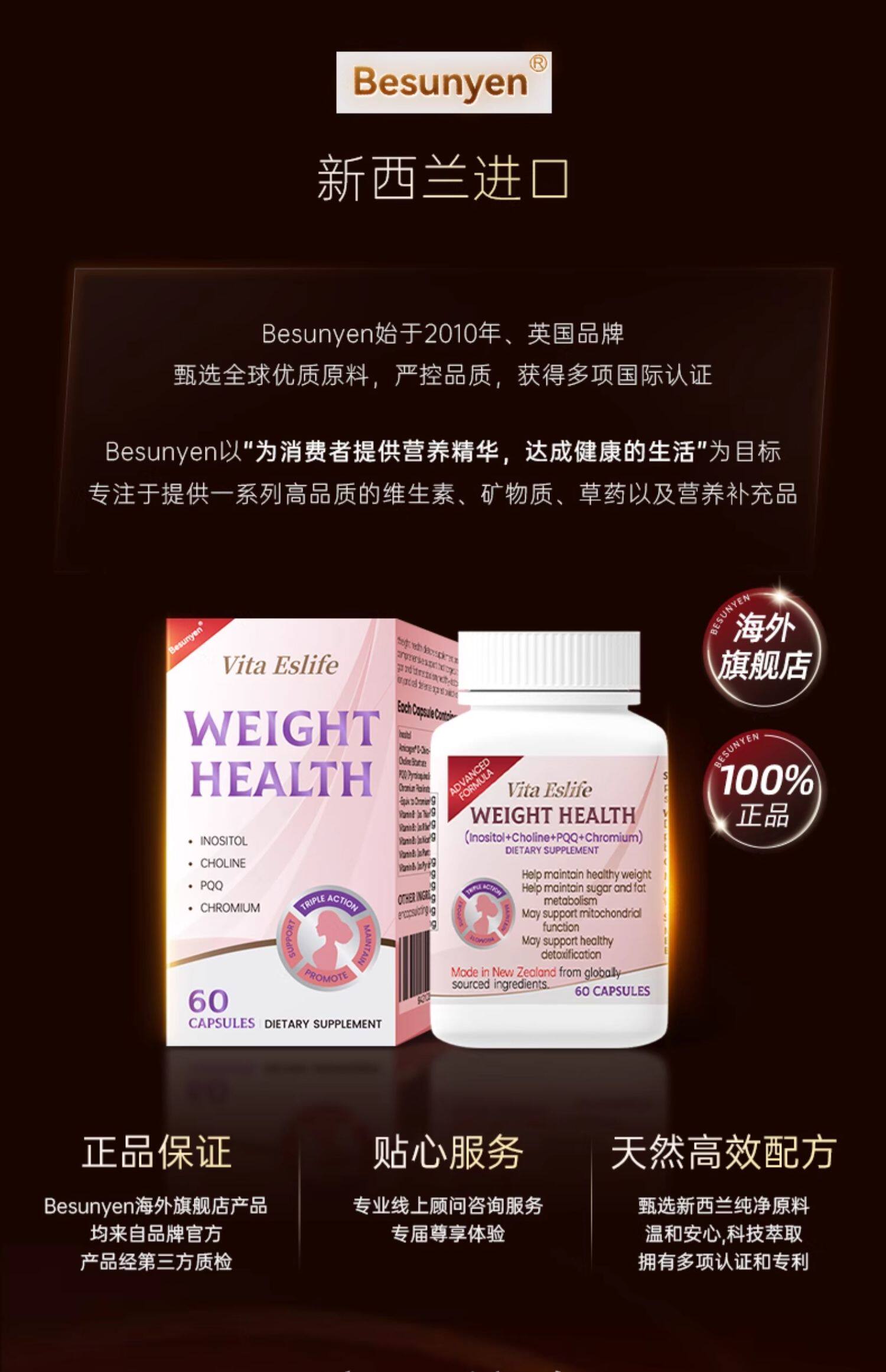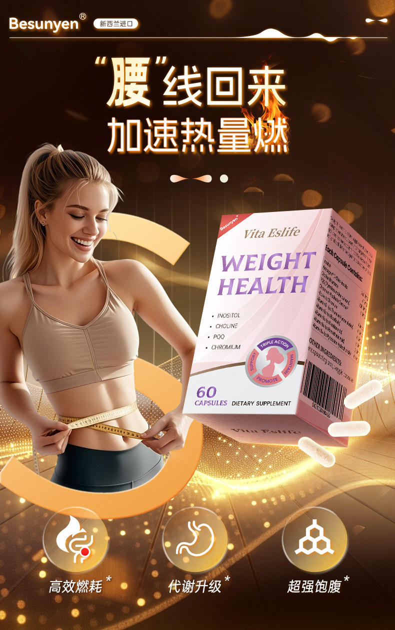 Besunyen、代谢小丸子、身材管理、食欲饱腹、PQQ铬肌醇胆碱、1周期量
